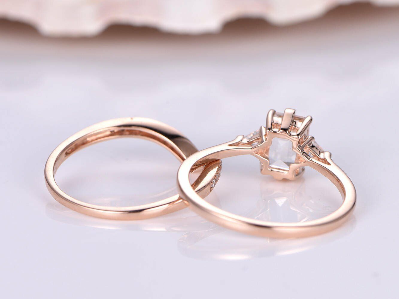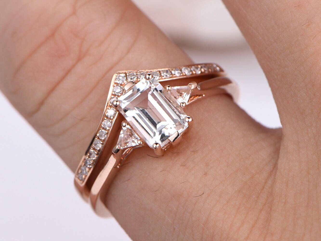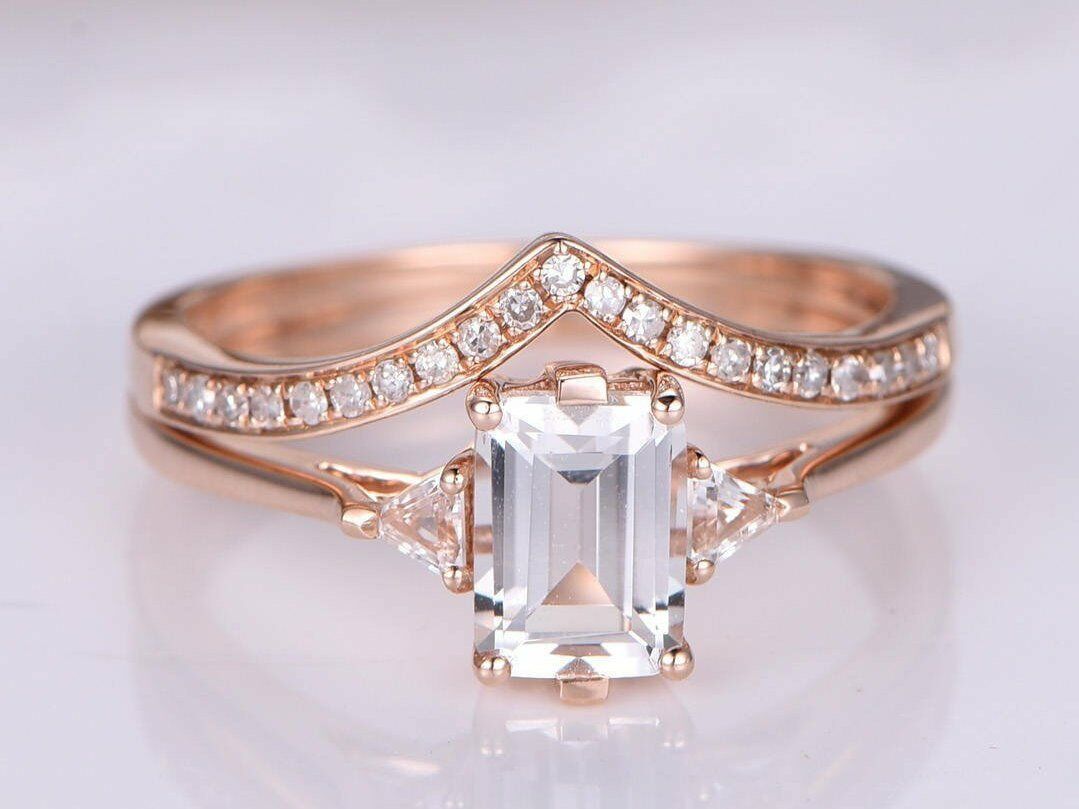 Bridal Set Engagement Ring 1ct Emerald Cut VVS1D Diamond 14k Rose Gold Finish