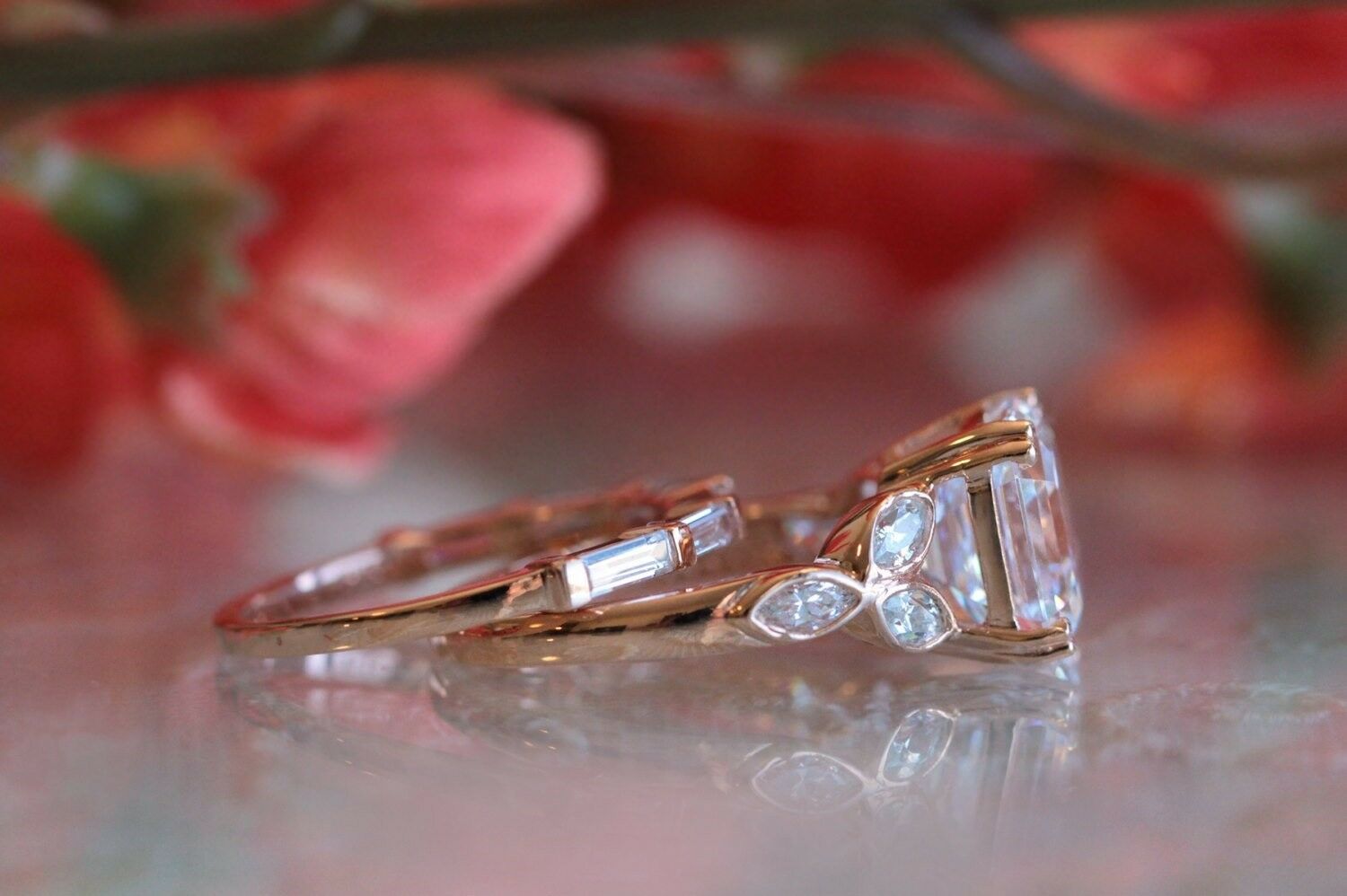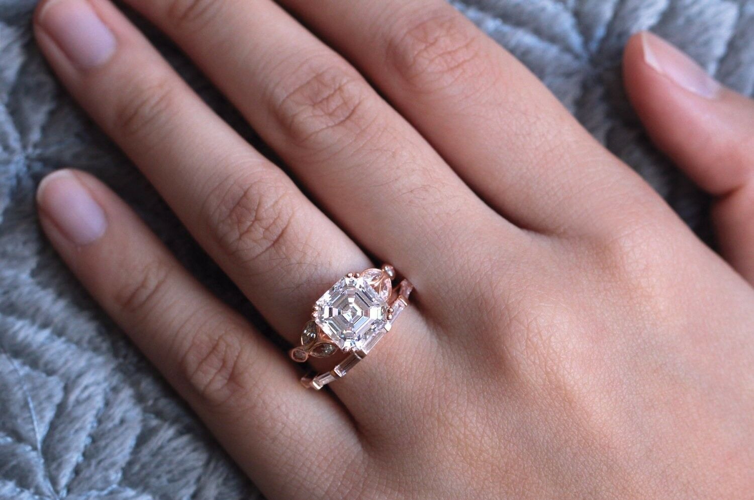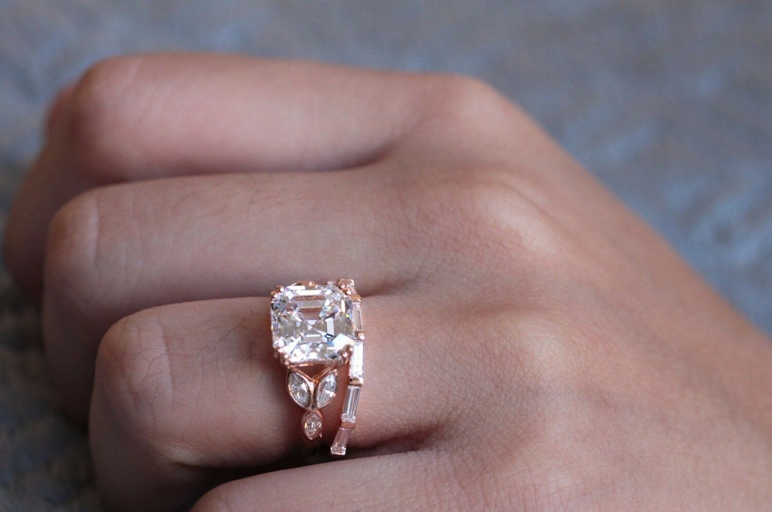 Bridal Set Engagement Ring 2ct Asscher Cut VVS1D Diamond 14k Rose Gold Finish
