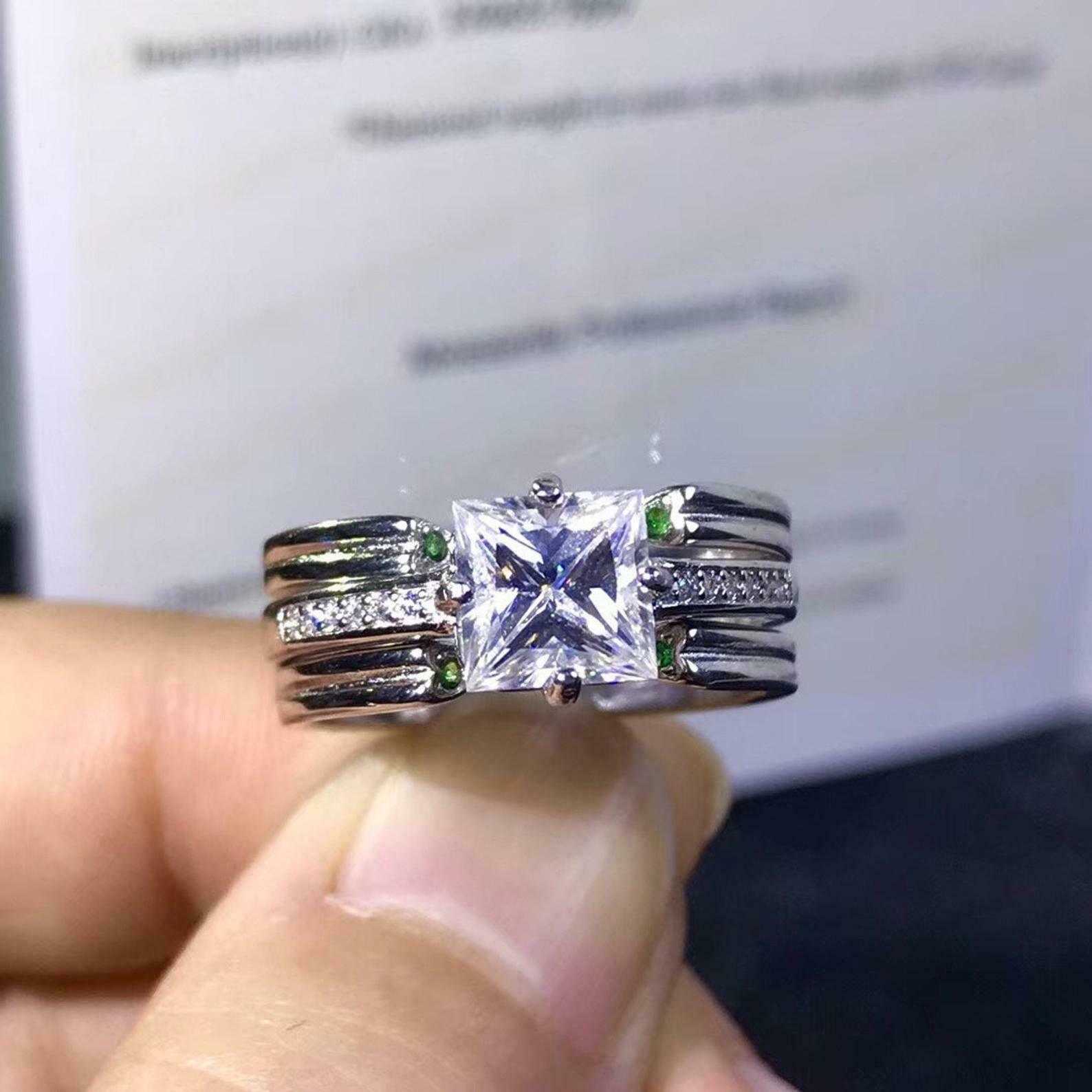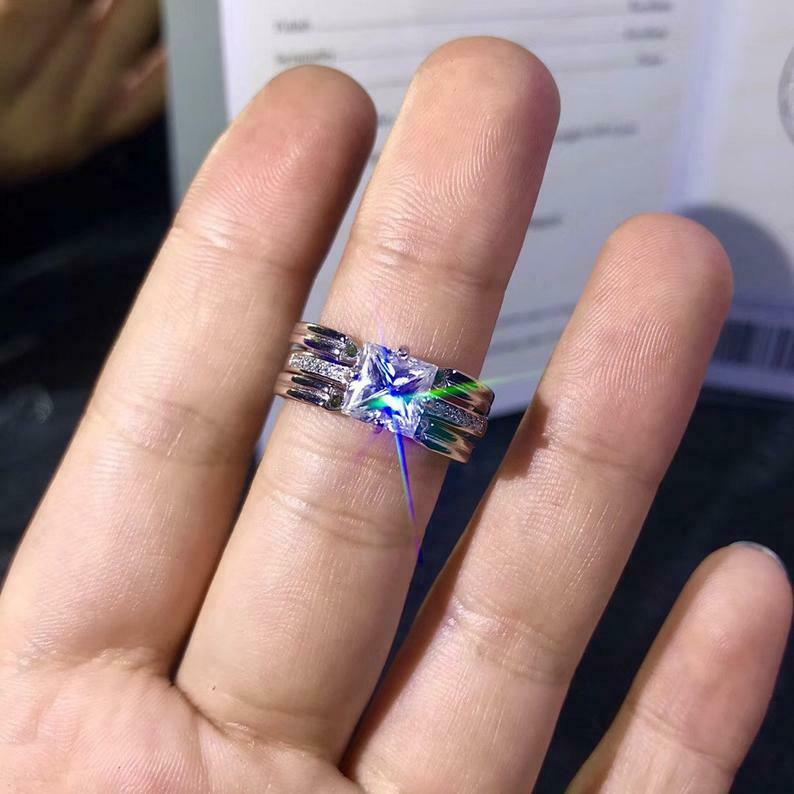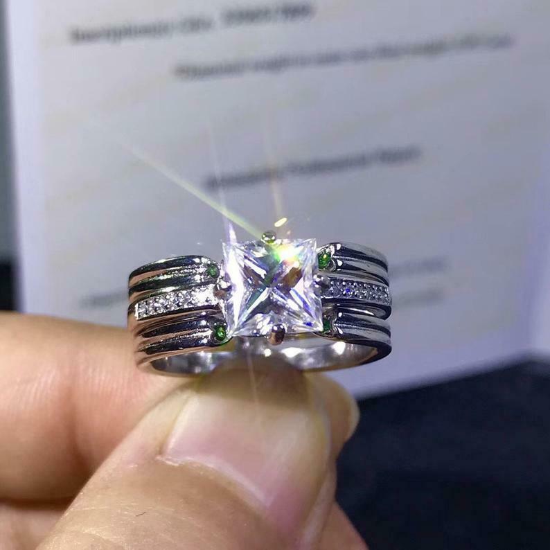 Bridal Set Engagement Ring Guard 1.5ct Princess Cut Diamond 14k WhiteGold Finish