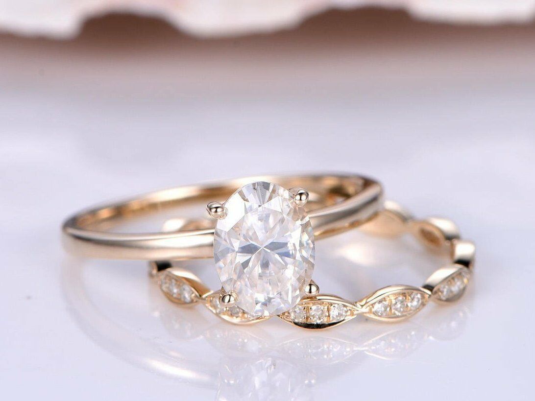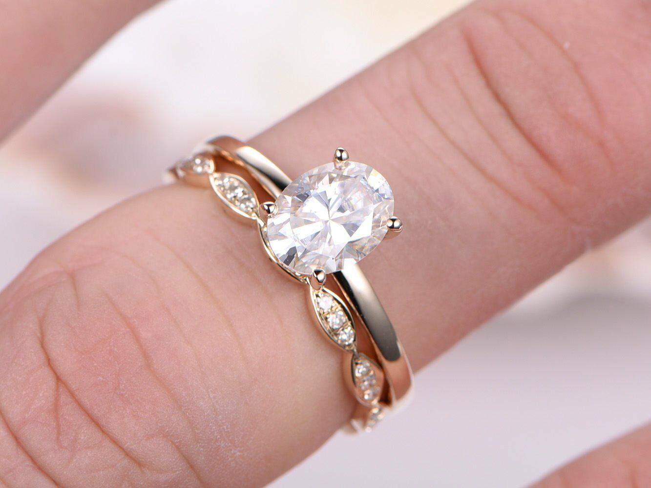 Bridal Set Solitaire Engagement Ring 1.2ct Oval Cut Diamond 14k Rose Gold Finish