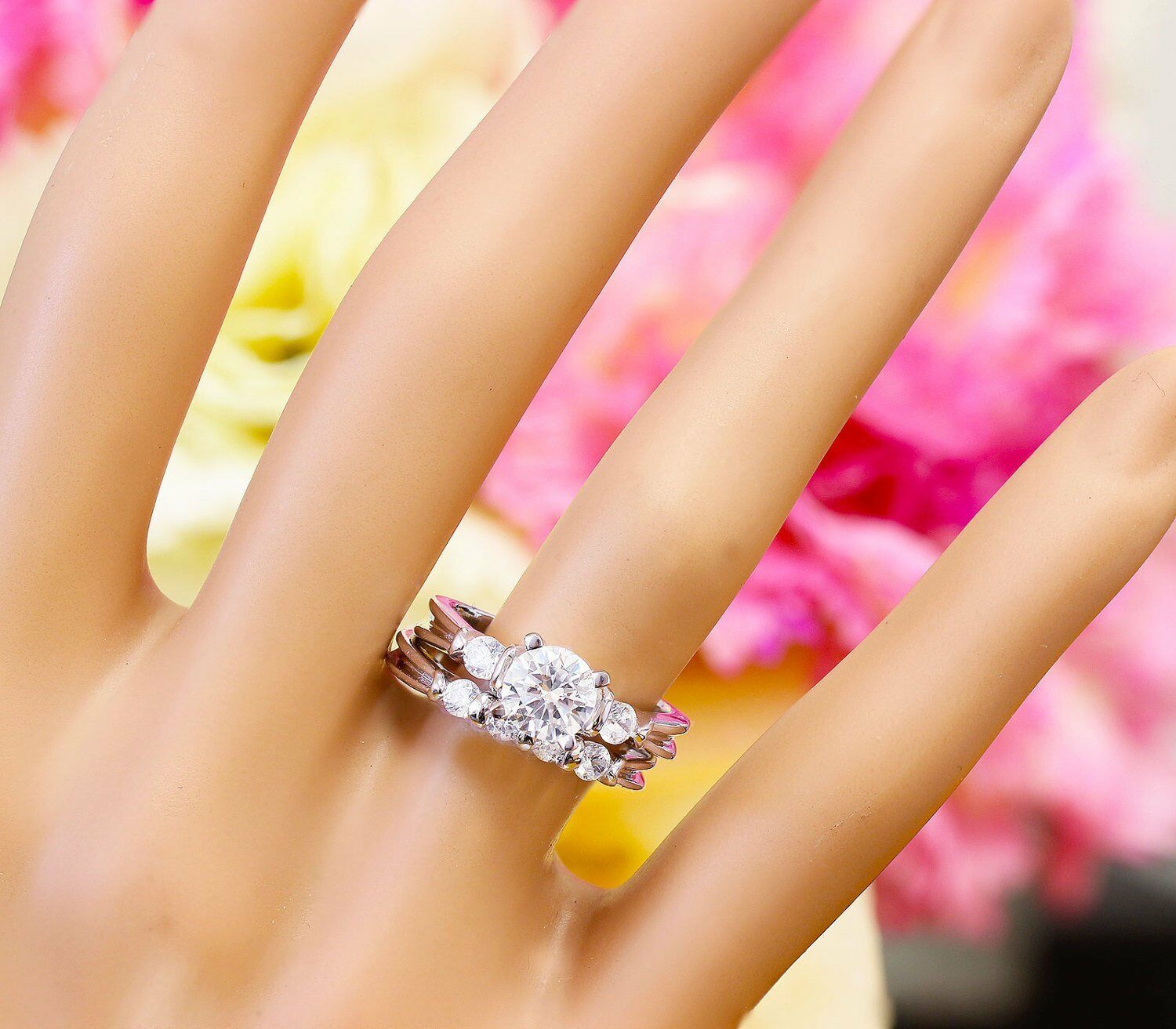 Bridal Set Trilogy Engagement Ring 2ct Round Cut Diamond 14k White Gold Finish