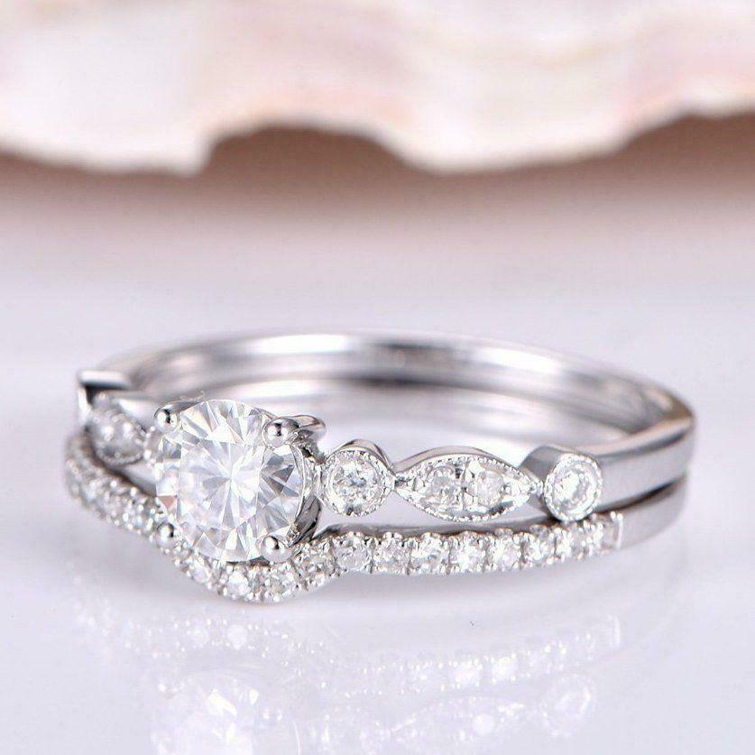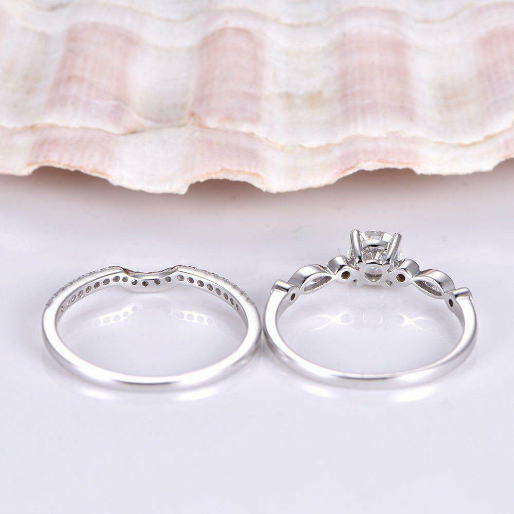 Bridal Set Wedding Engagement Ring 1.5ct Round Cut Diamond 14k White Gold Finish