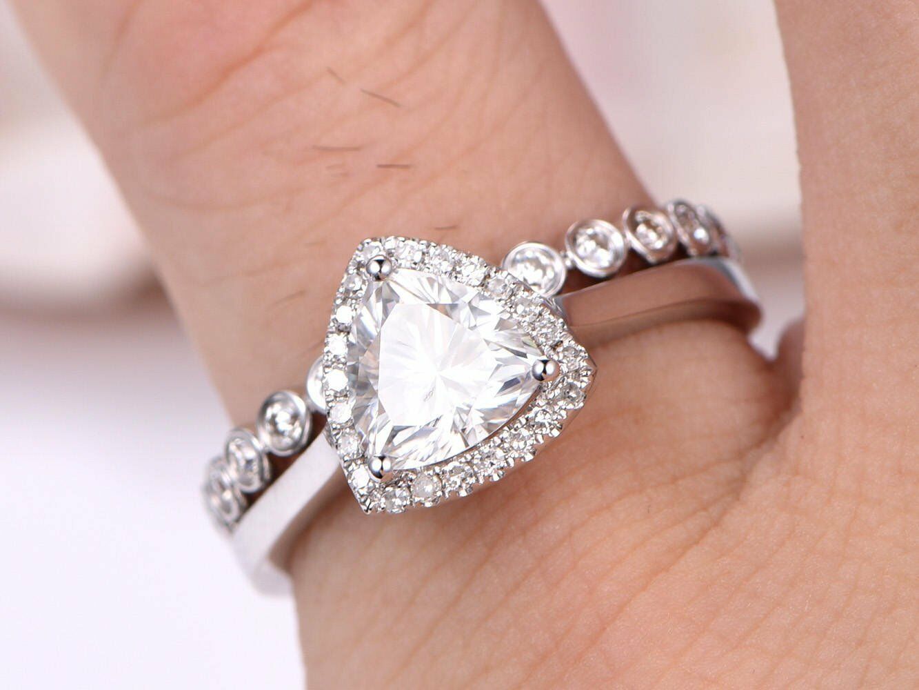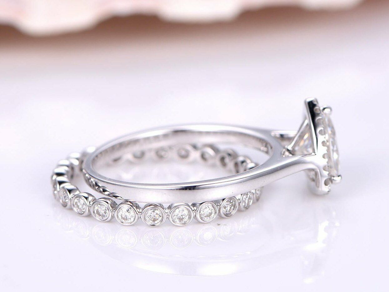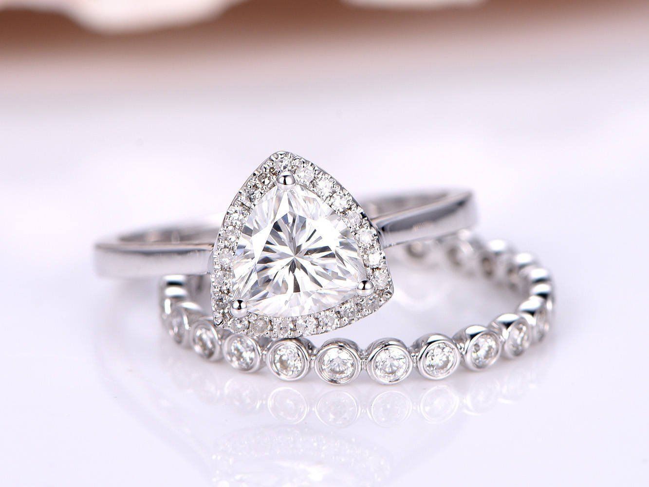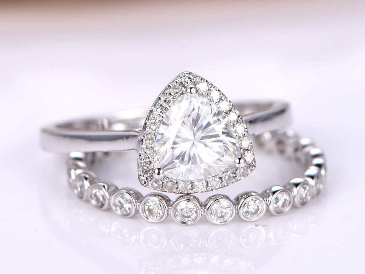 Bridal Set Women Engagement Ring 2ct Trillion Cut Diamond 14k White Gold Finish