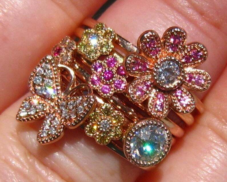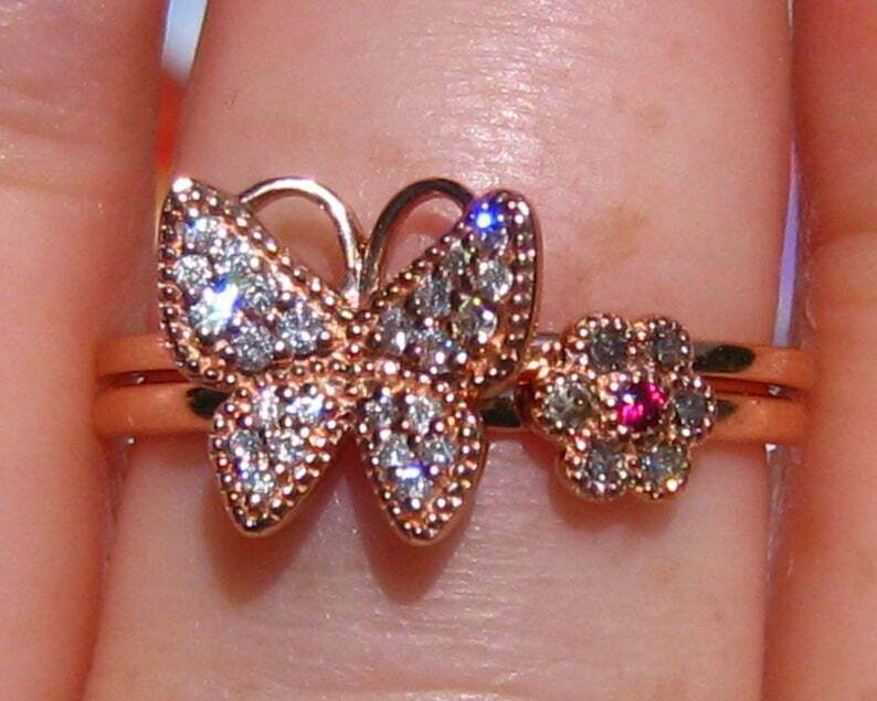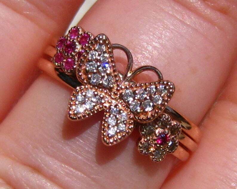 Butterfly Design Engagement Ring 1.2ct Round Cut Diamond 14k Rose Gold Finish