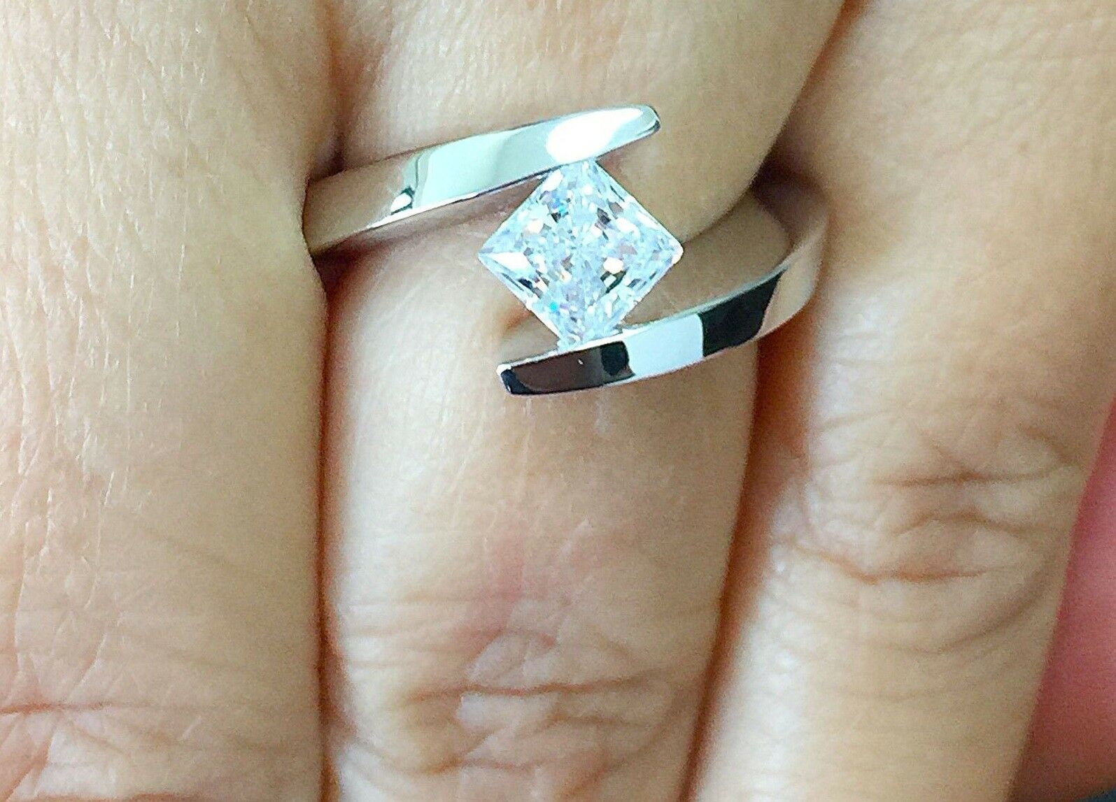 Bypass Tension Setting Engagement Ring 1ct Princess Diamond 14k WhiteGold Finish