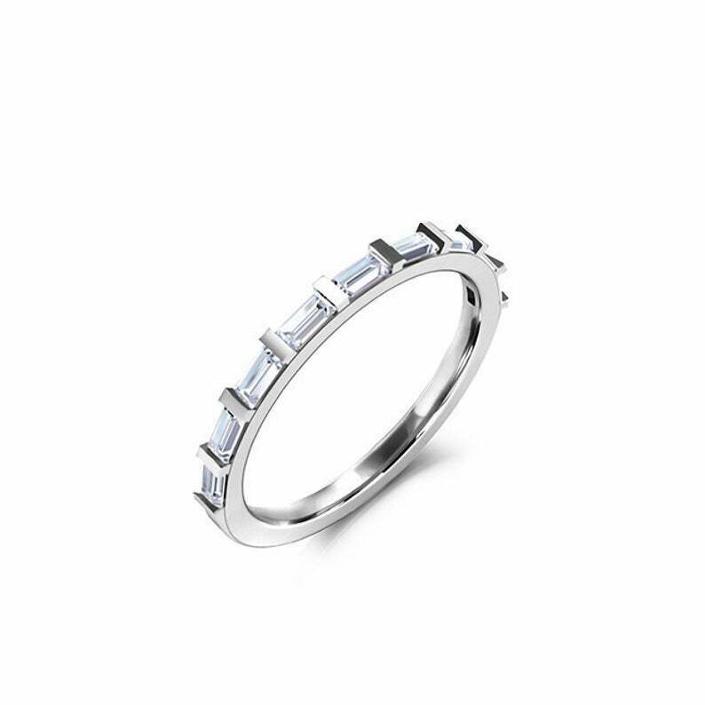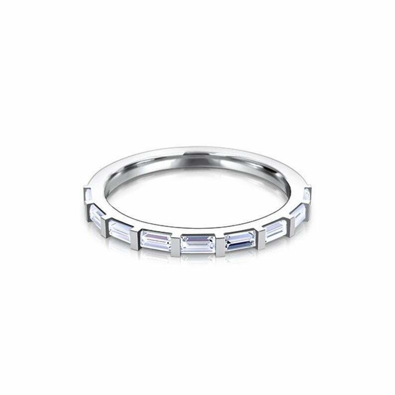 Channel Set Half Eternity Band 0.54ct Baguette Cut Diamond 14k White Gold Finish
