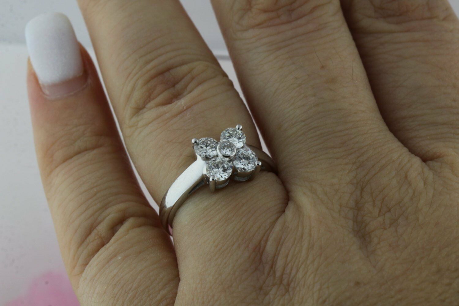 Clover Cluster Floral Engagement Ring 1ct Round Cut Diamond 14k WhiteGold Finish