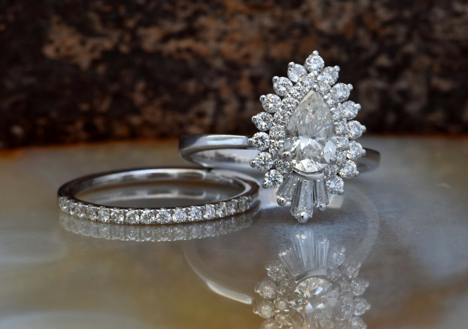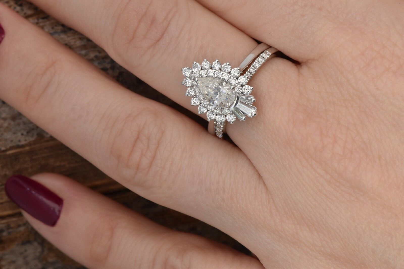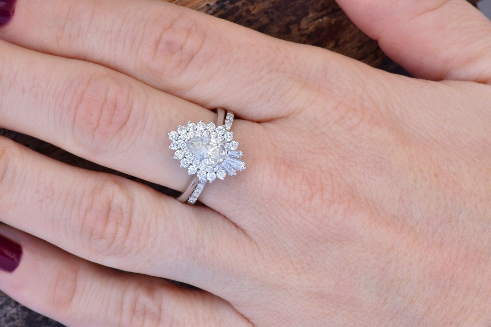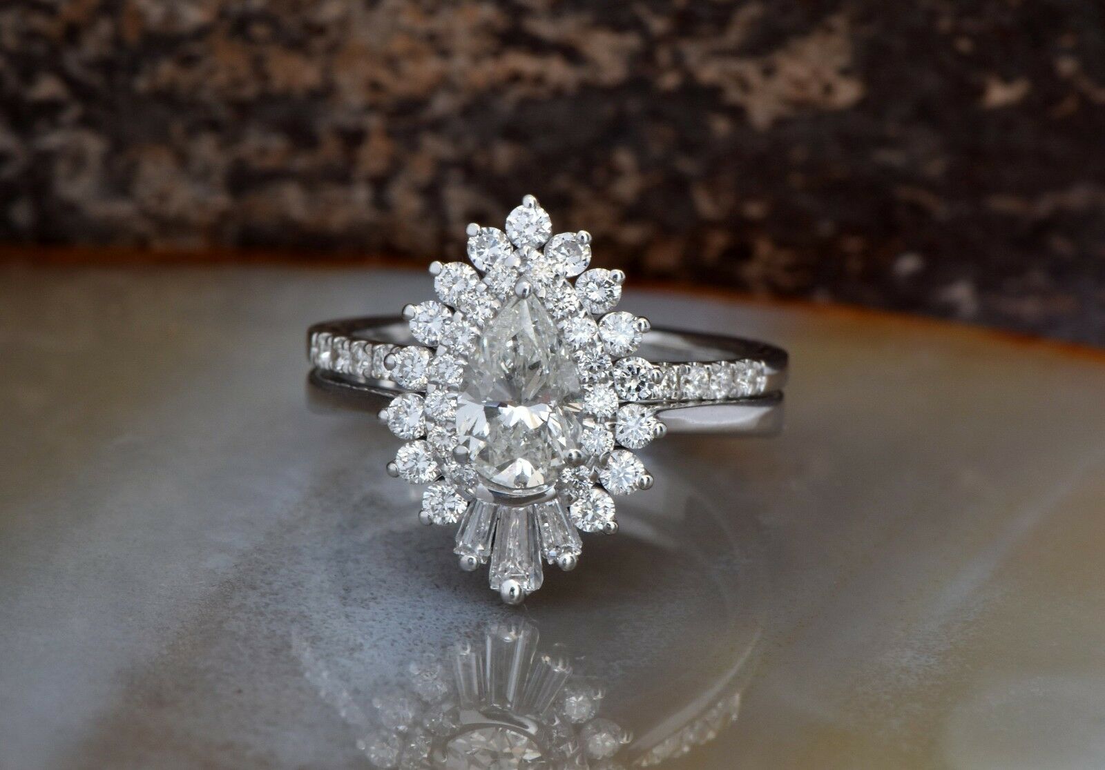 Cluster Bridal Set Wedding Engagement Ring 3ct Pear Diamond 14k WhiteGold Finish