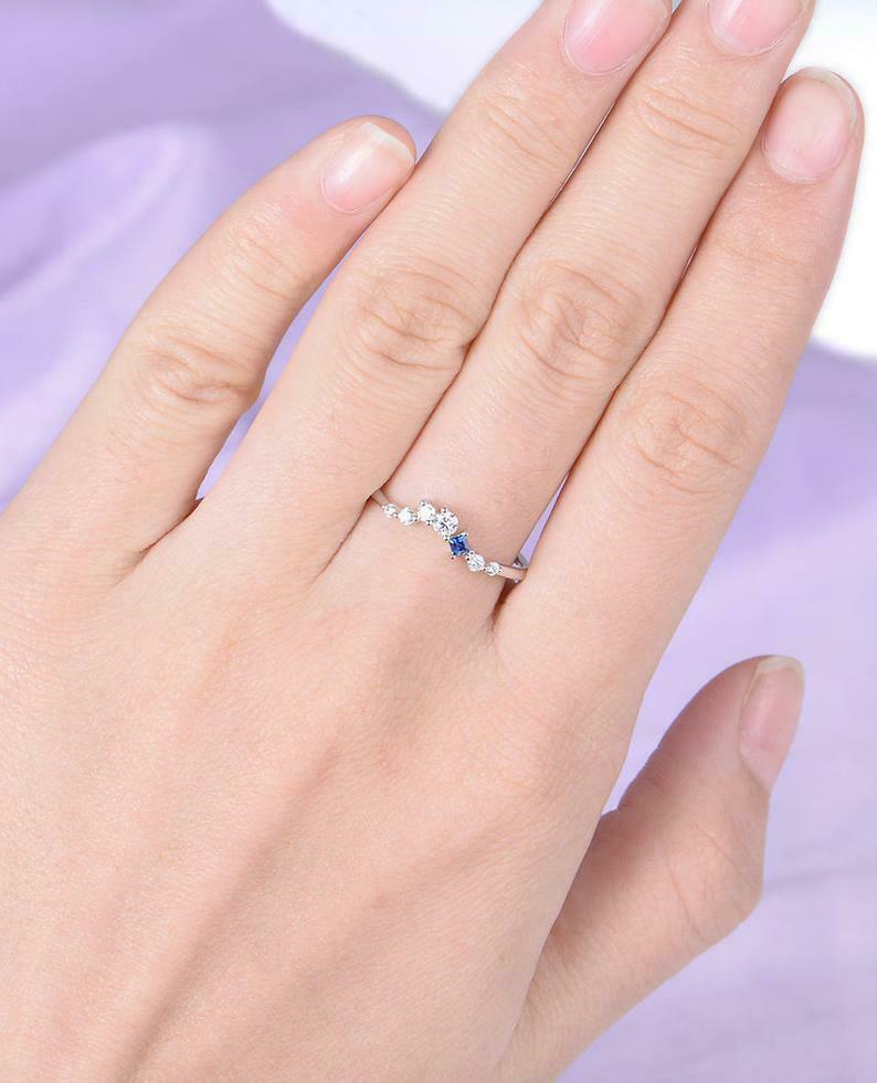 Cluster Curved Wedding Band 1ct Round Cut Diamond Sapphire 14k White Gold Finish