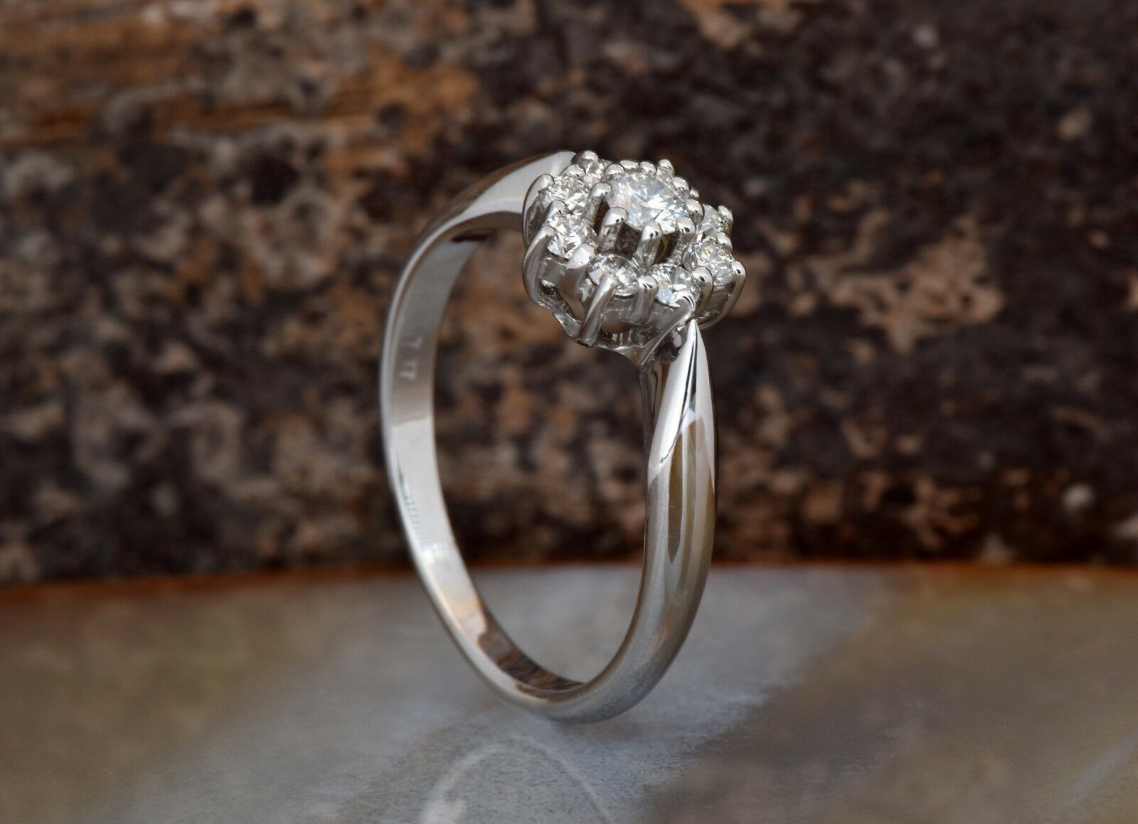 Cluster Flower Engagement Ring 1.3ct Round Cut Diamond 14k White Gold Finish