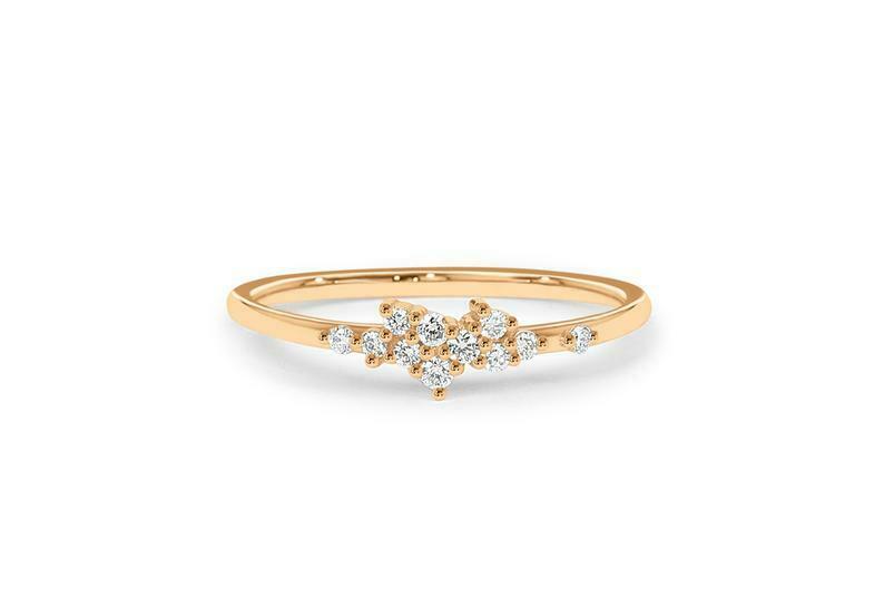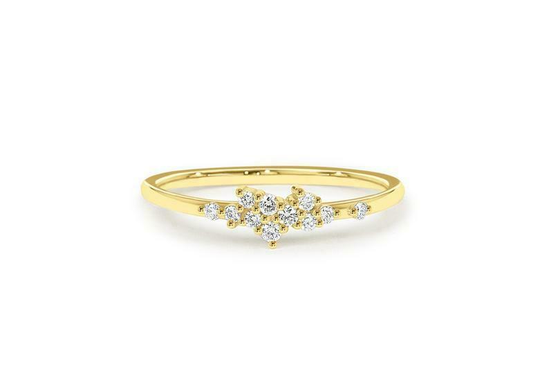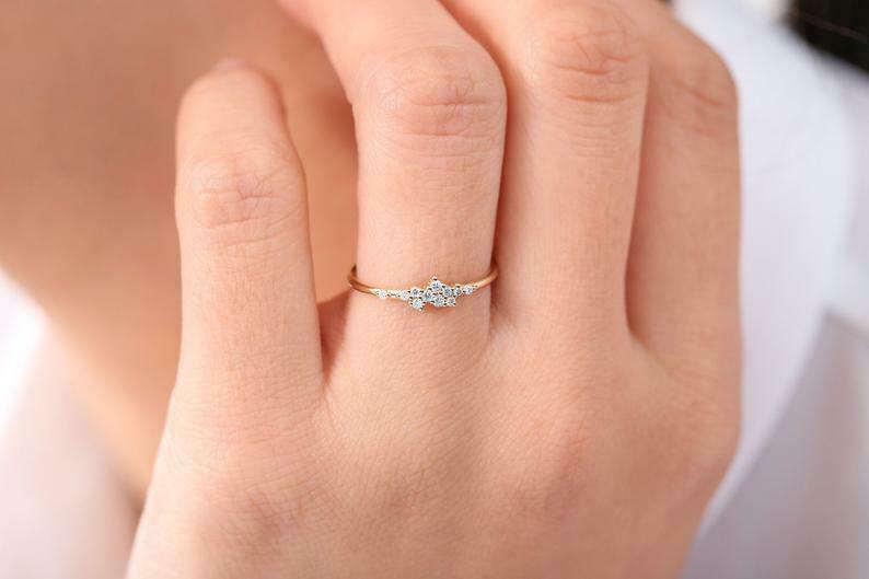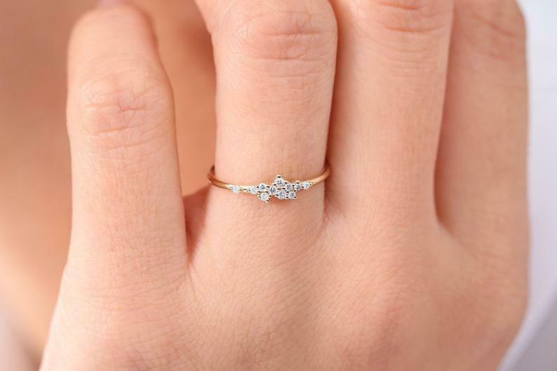 Cluster Minimalist Engagement Ring 1ct Round Cut Diamond 14k Yellow Gold Finish