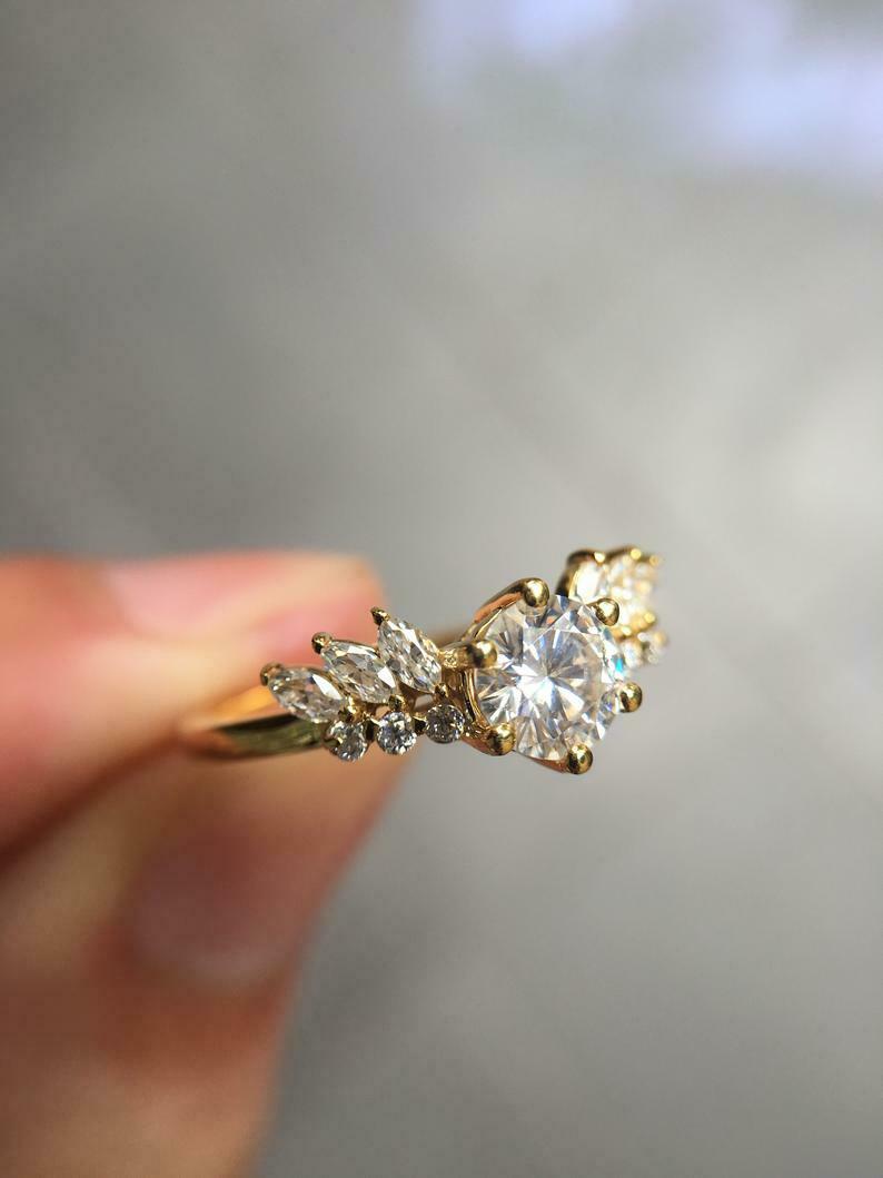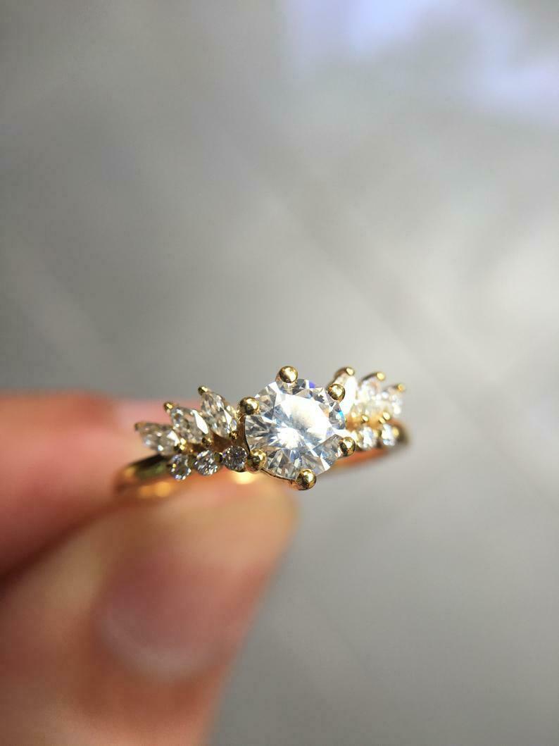 Cluster Solitaire Engagement Ring 1.3ct Round Cut Diamond 14k Yellow Gold Finish