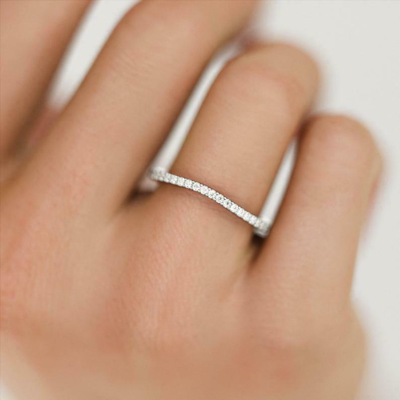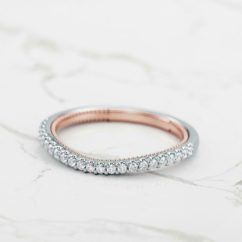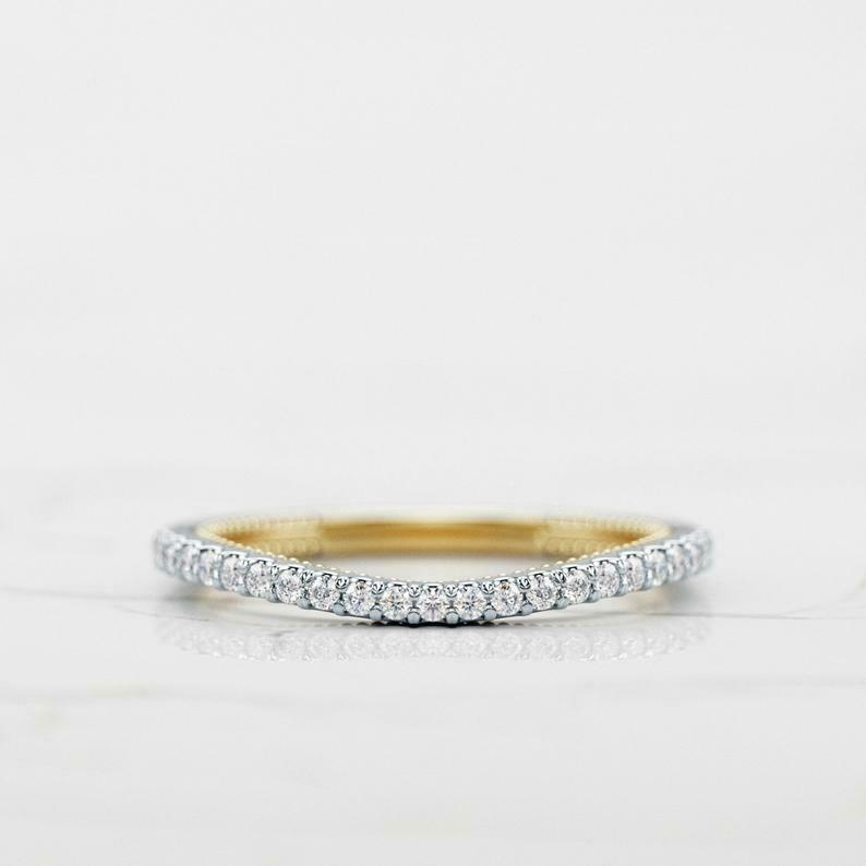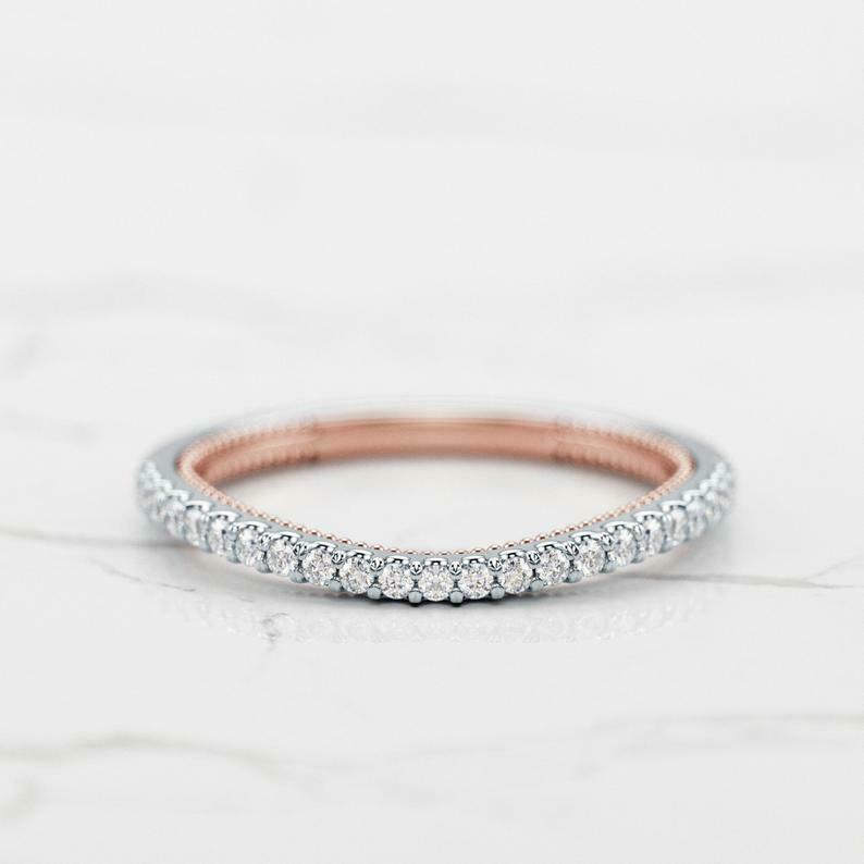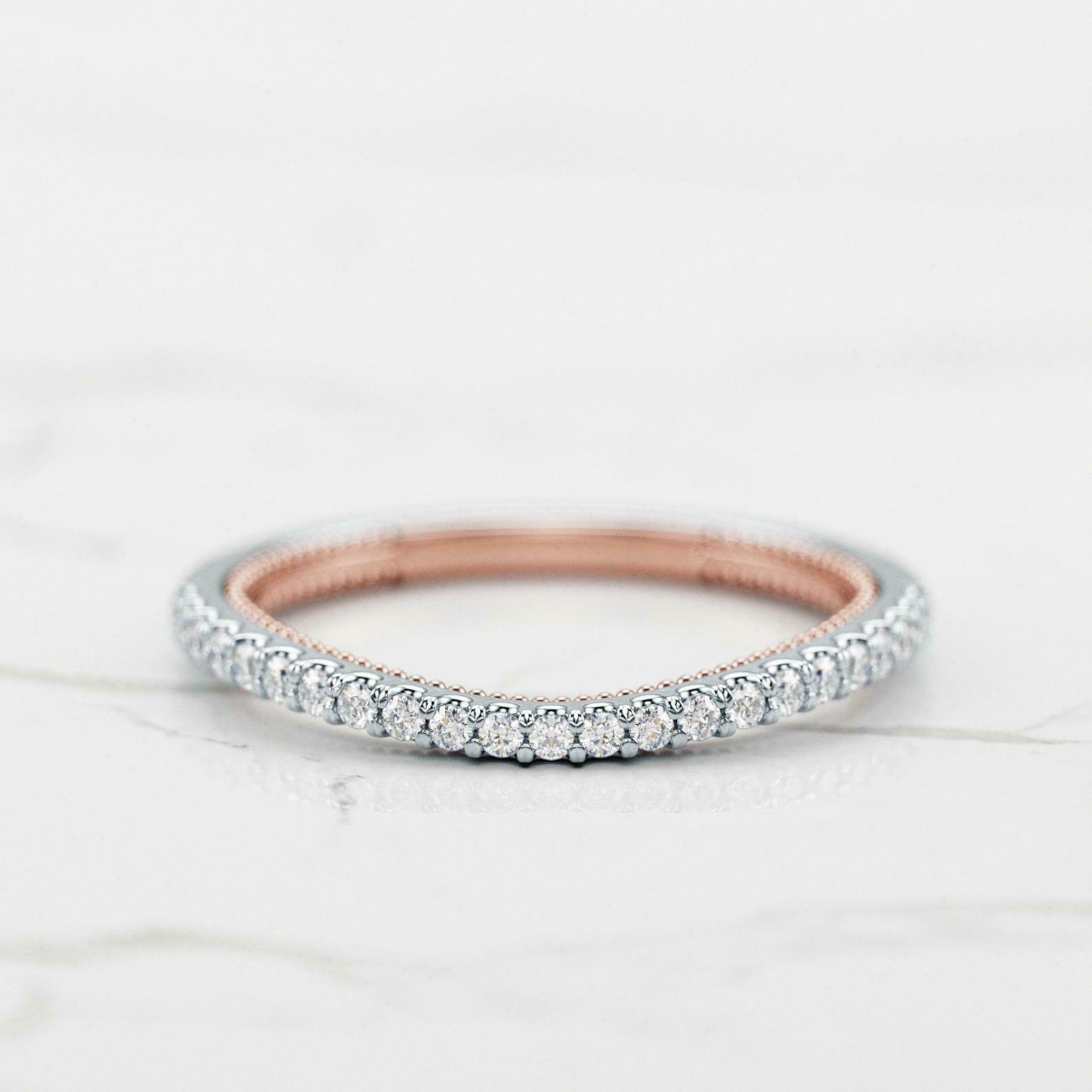 Curved Half Eternity Wedding Band 0.75ct Round Cut Diamond 14k Dual Gold Finish