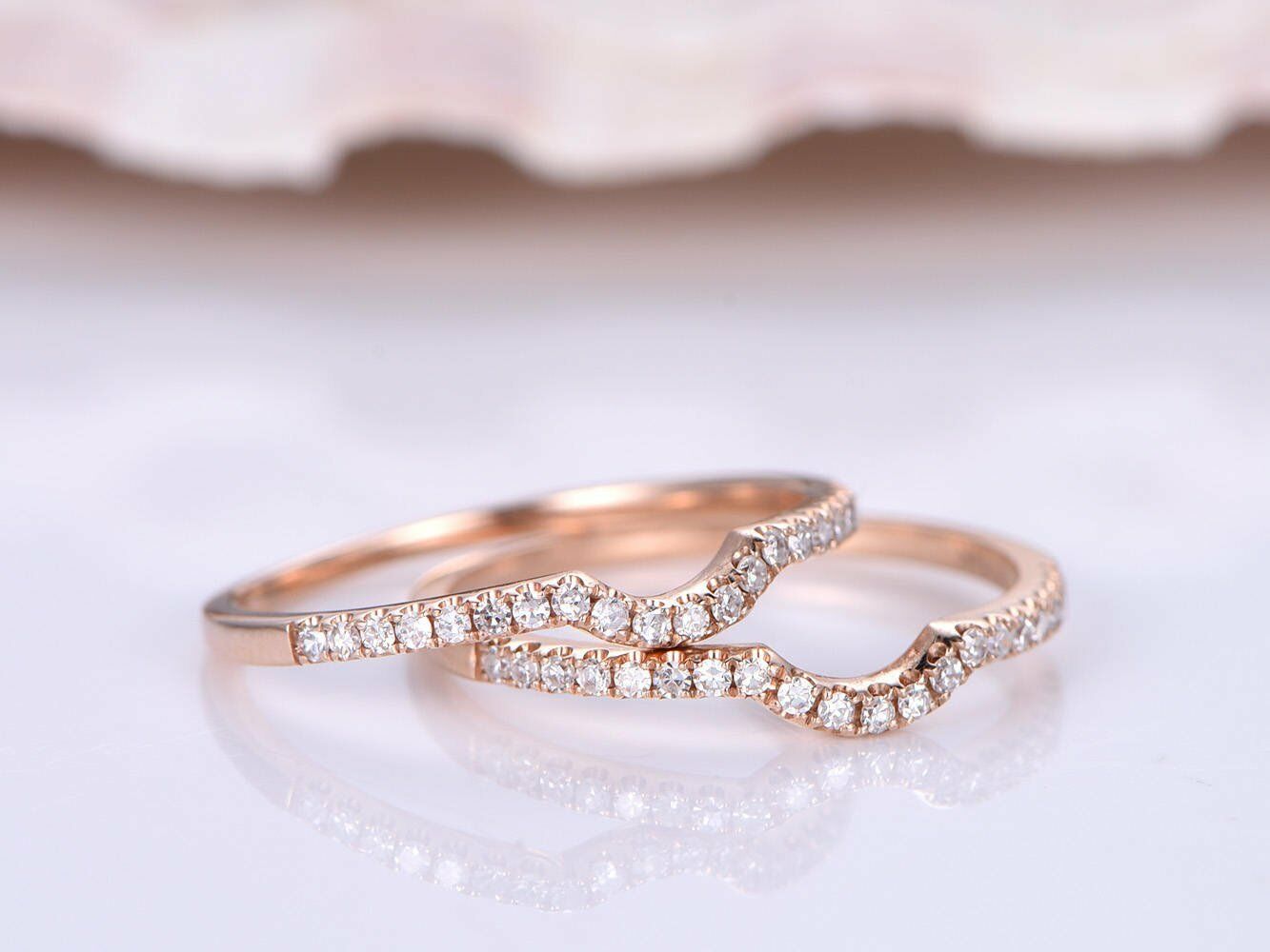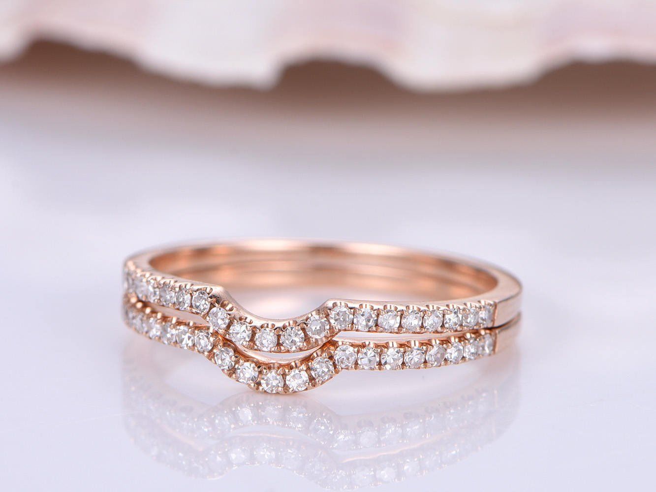 Curved Half Eternity Wedding Ring Band 2ct Round Cut Diamond 14k RoseGold Finish