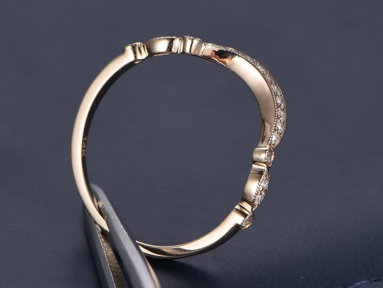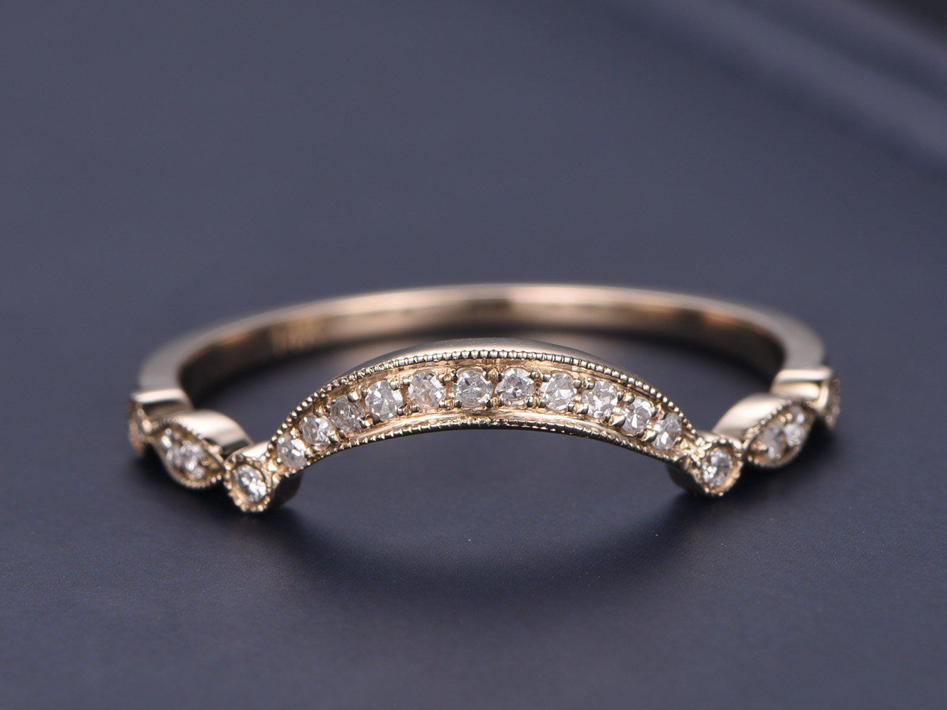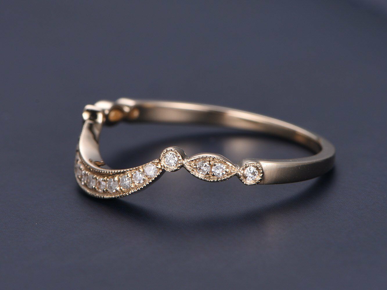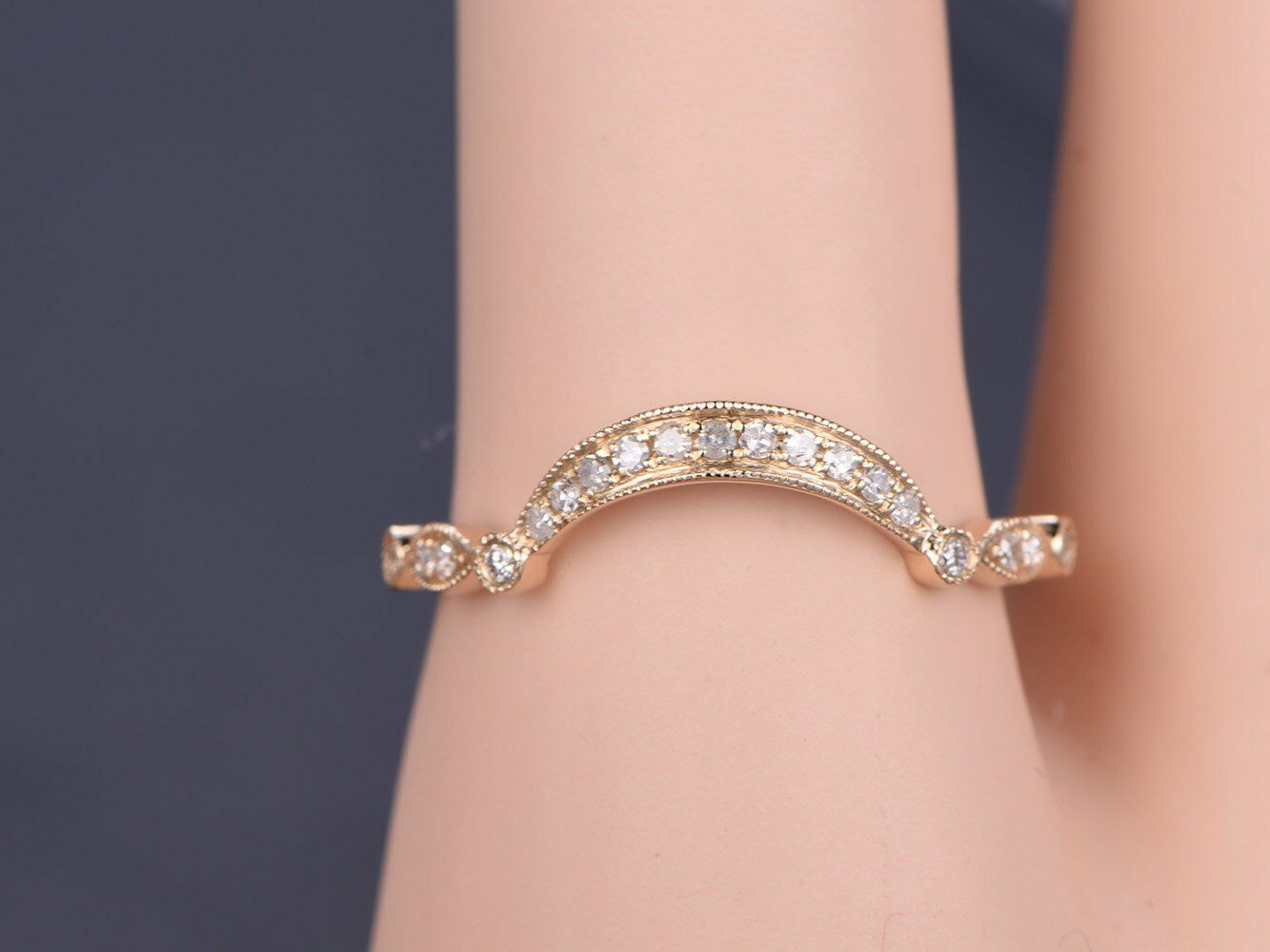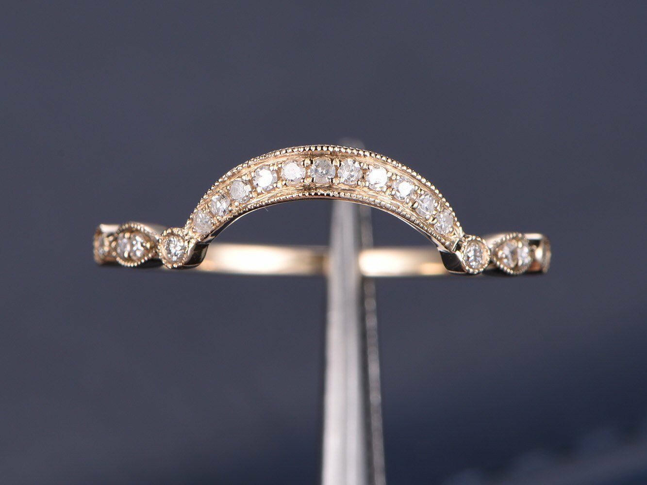 Curved Milgrain Engagement Ring 1.2ct Round Cut Diamond 14k Yellow Gold Finish