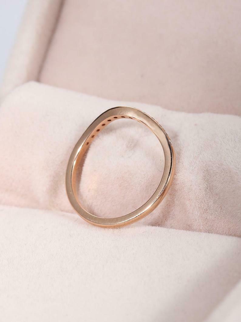 Curved Minimalist Wedding Ring Band 0.3ct Round Cut Diamond 14k Rose Gold Finish
