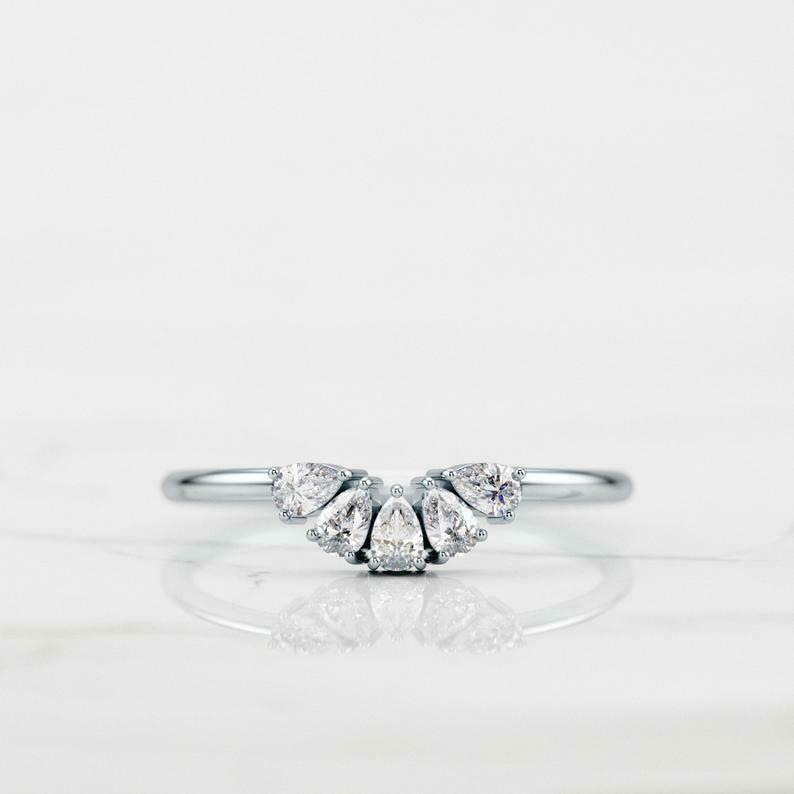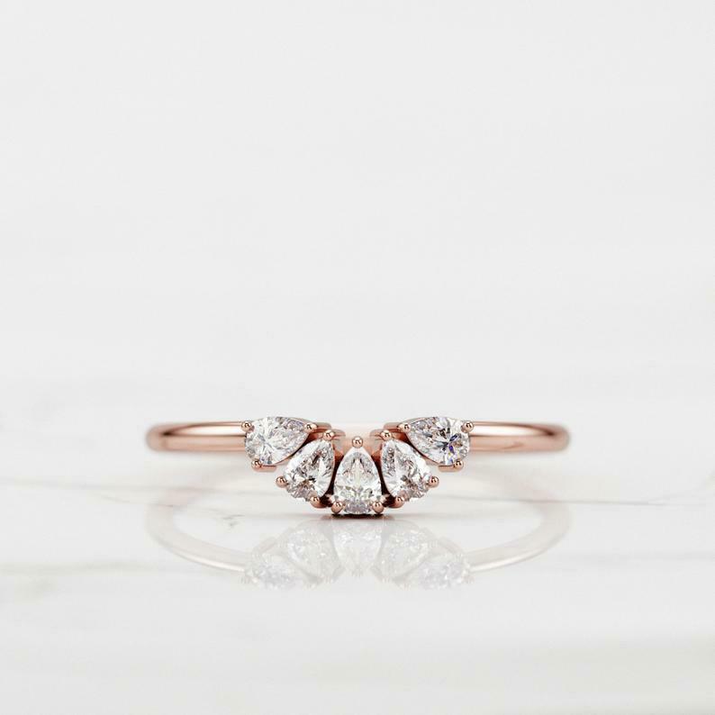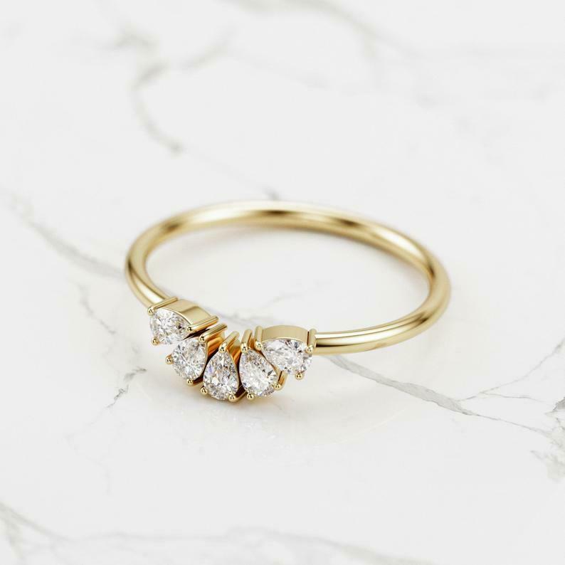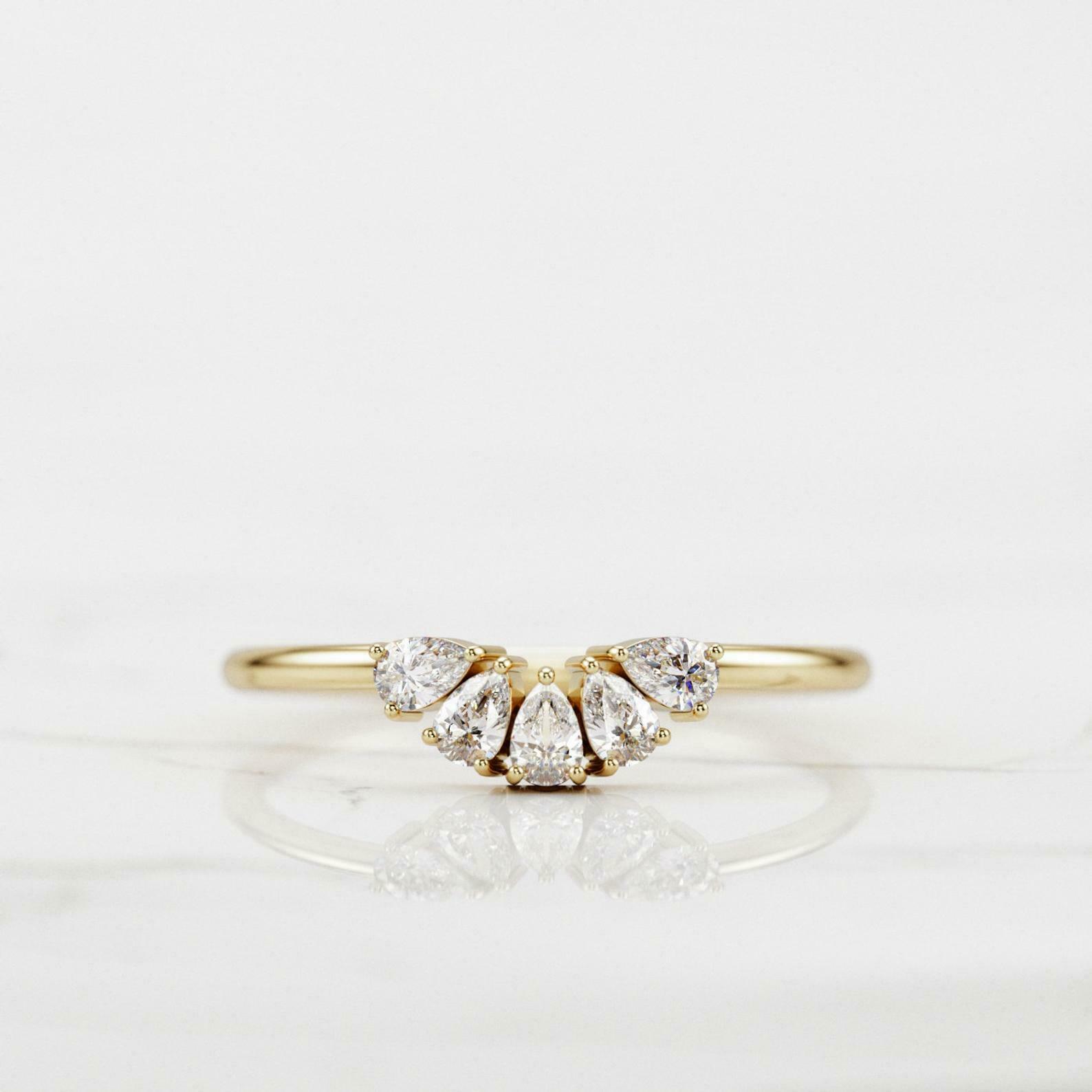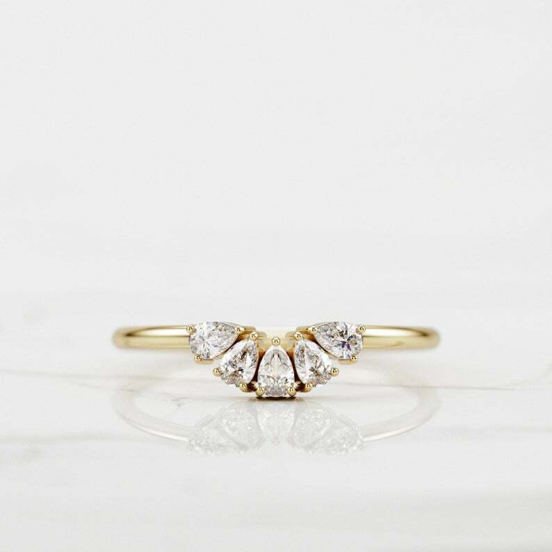Curved Stackable Wedding Band 0.4ct Pear Cut VVS1D Diamond 14k Yellow Gold Finish