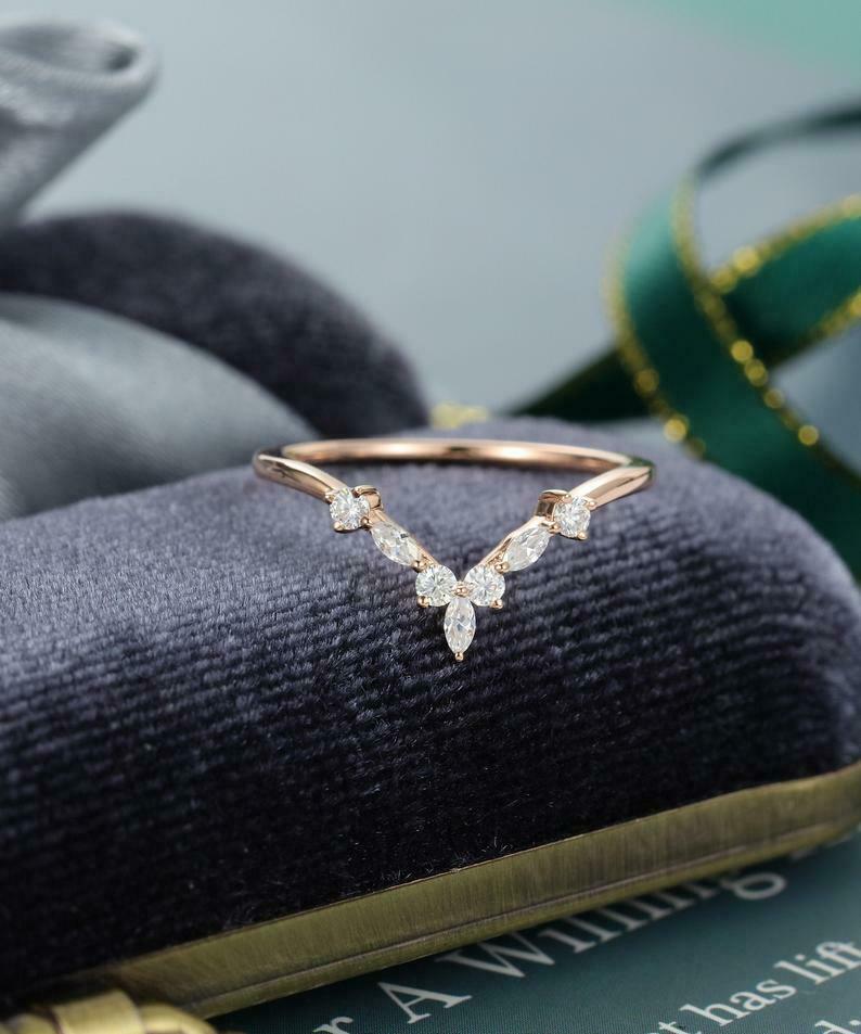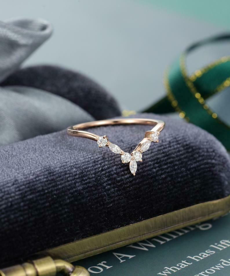 Curved Stackable Wedding Band 1.2ct Marquise Cut Diamond 14k Rose Gold Finish