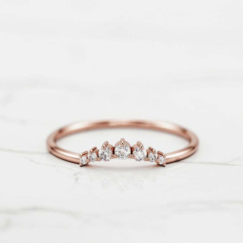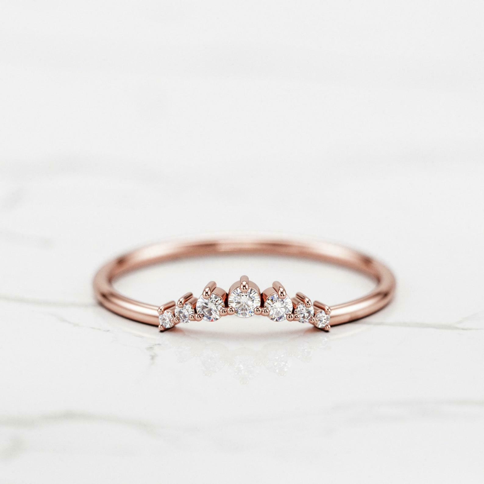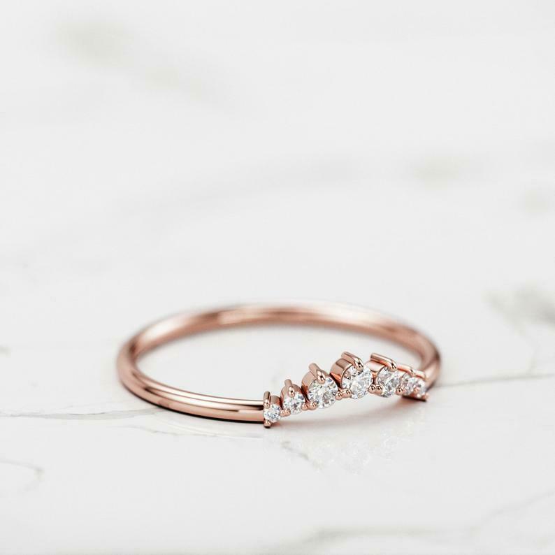 Curved Stackable Wedding Ring Band 0.15ct Round Cut Diamond 14k Rose Gold Finish