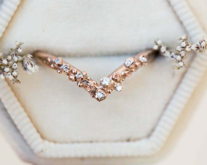 Curved Twig Chevron Stackable Wedding Band 0.5ct Round Diamond 14k RoseGold Over