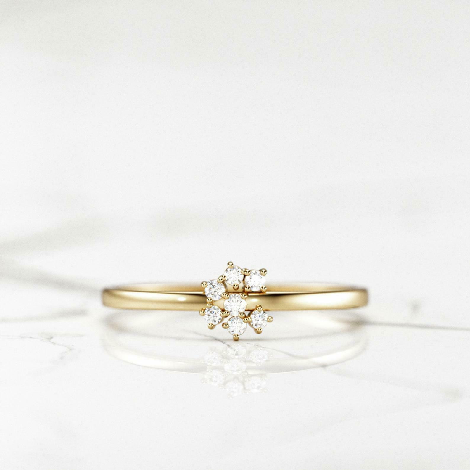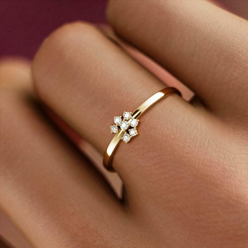 Dainty Cluster Solitaire Engagement Ring 0.5ct Round Cut Diamond 14k Yellow Gold Finish