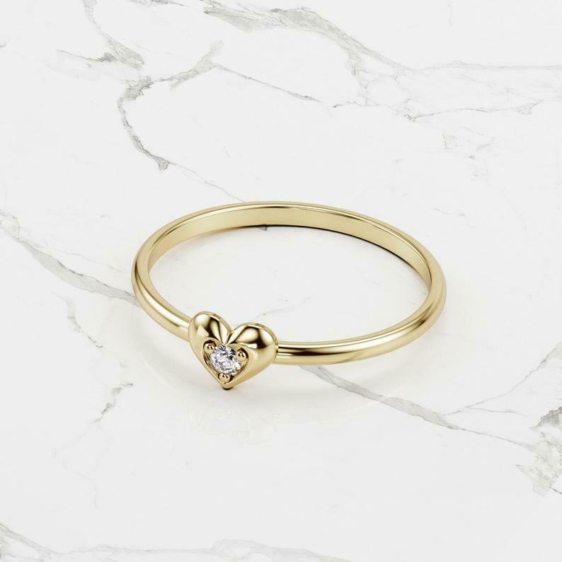Dainty Minimalist Engagement Ring 0.09ct Round Cut Diamond 10k Yellow Gold Finish