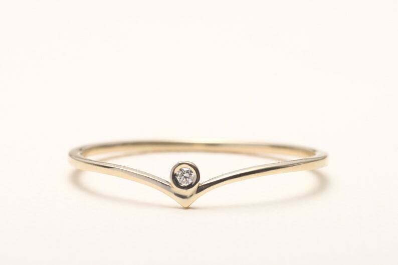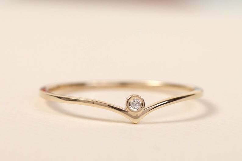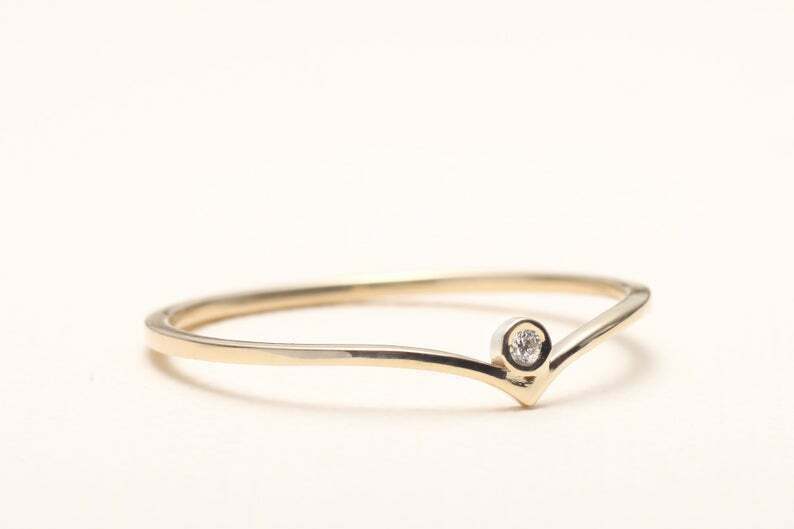 Dainty Minimalist Engagement Ring 0.09ct Round Cut Diamond 14k Yellow Gold Finish