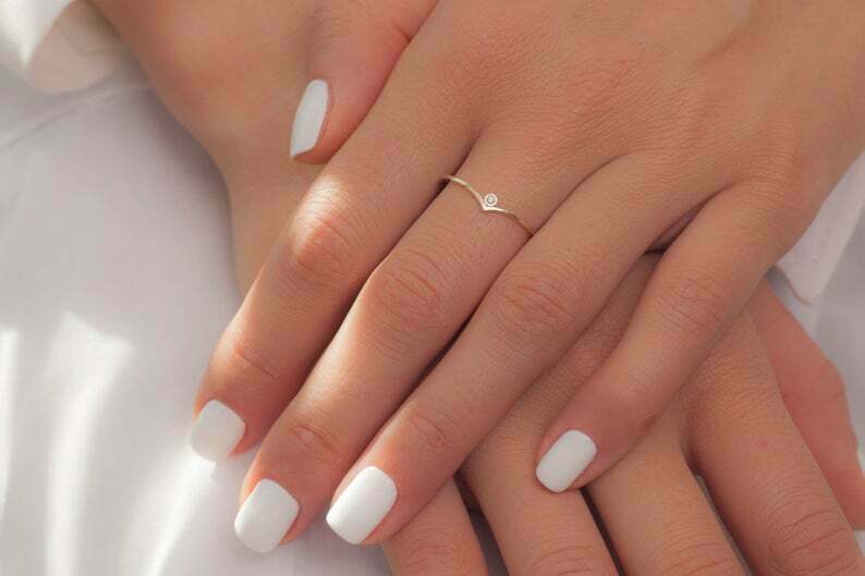 Dainty Minimalist Engagement Ring 0.09ct Round Cut Diamond 14k YellowGold Finish