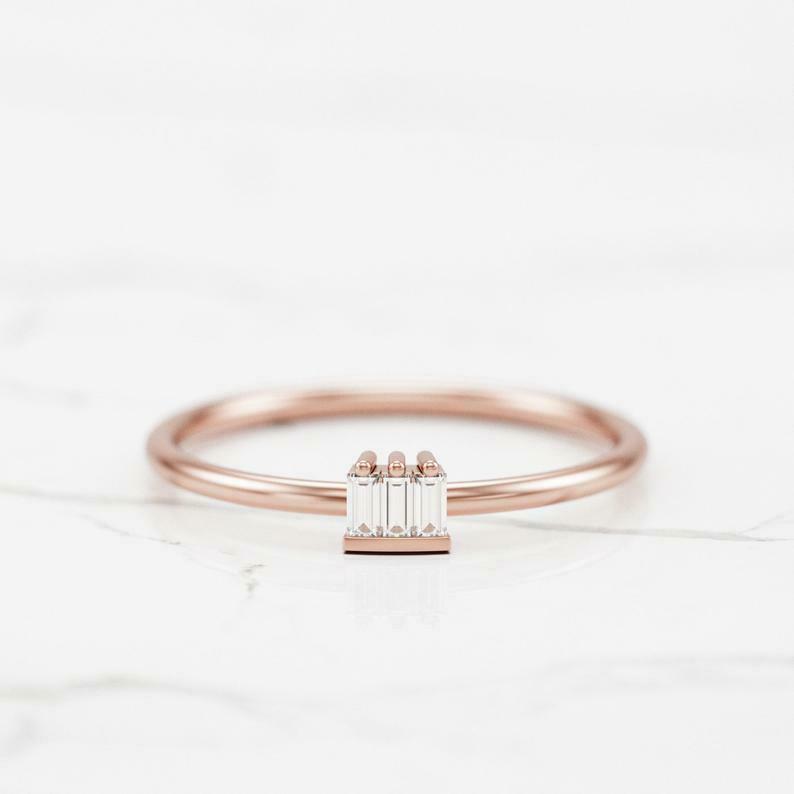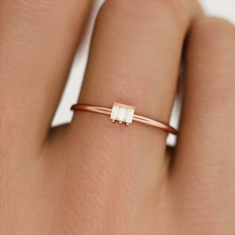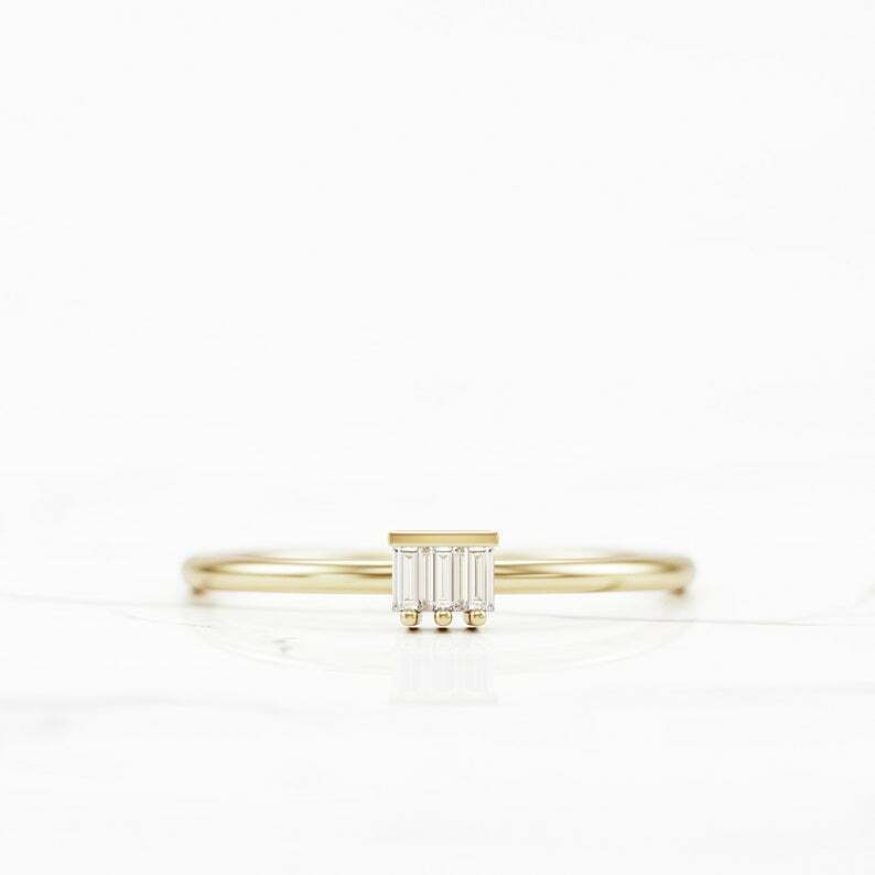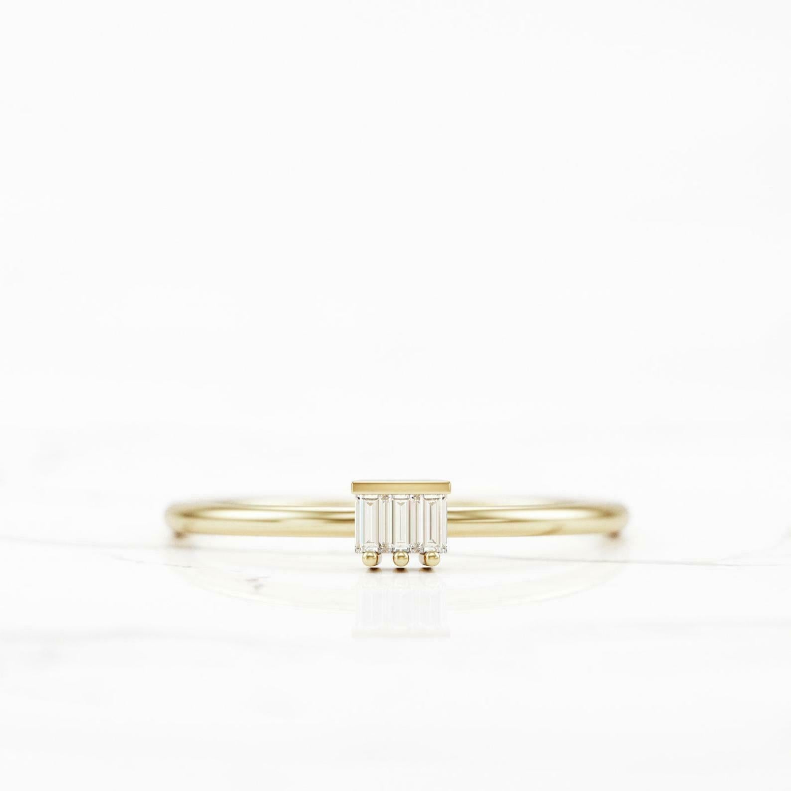 Dainty Minimalist Engagement Ring 0.2ct Baguette Cut Diamond 14k YellowGold Over