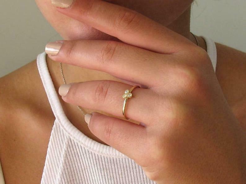 Dainty Minimalist Engagement Ring 0.35ct Round Cut Diamond 14k Yellow Gold Finish