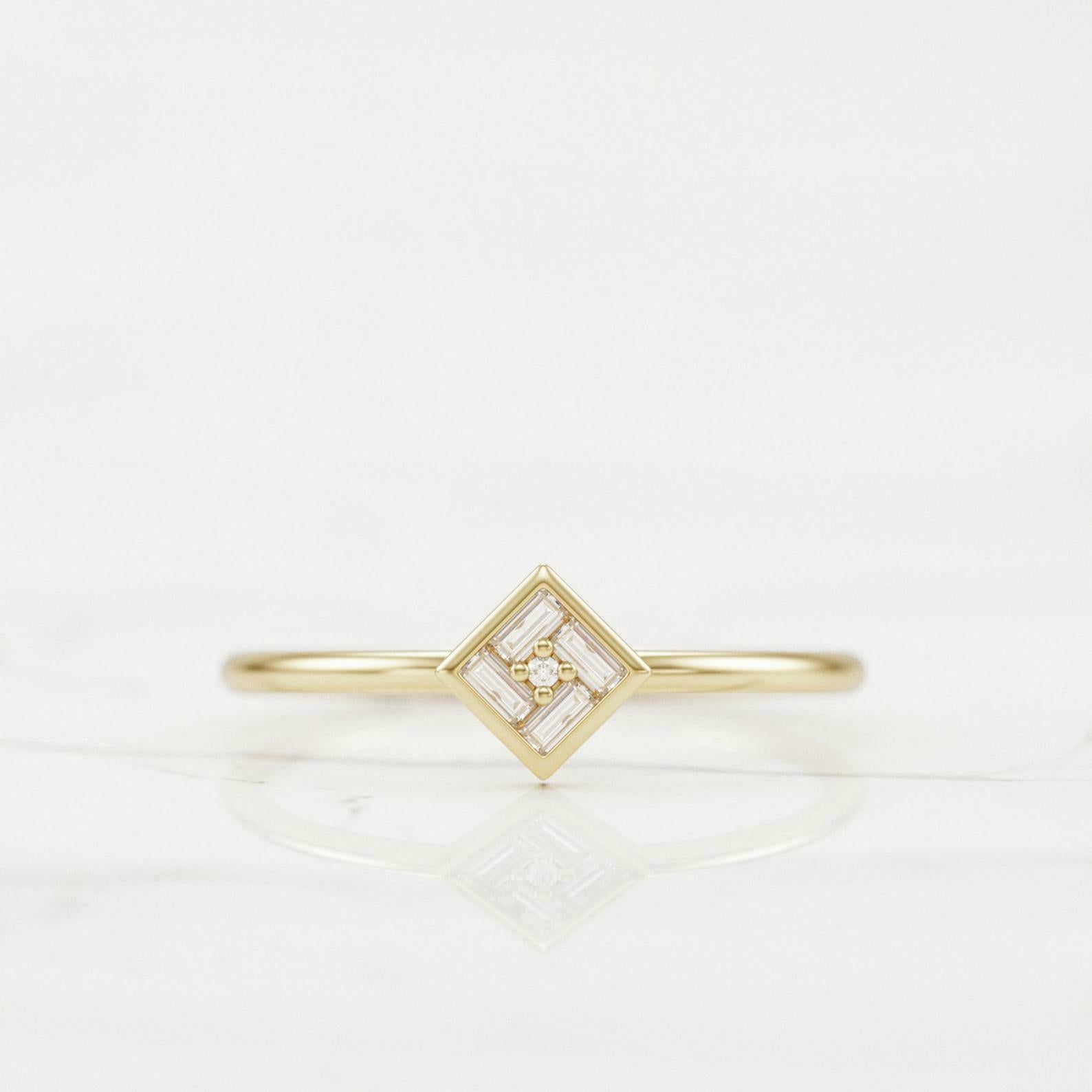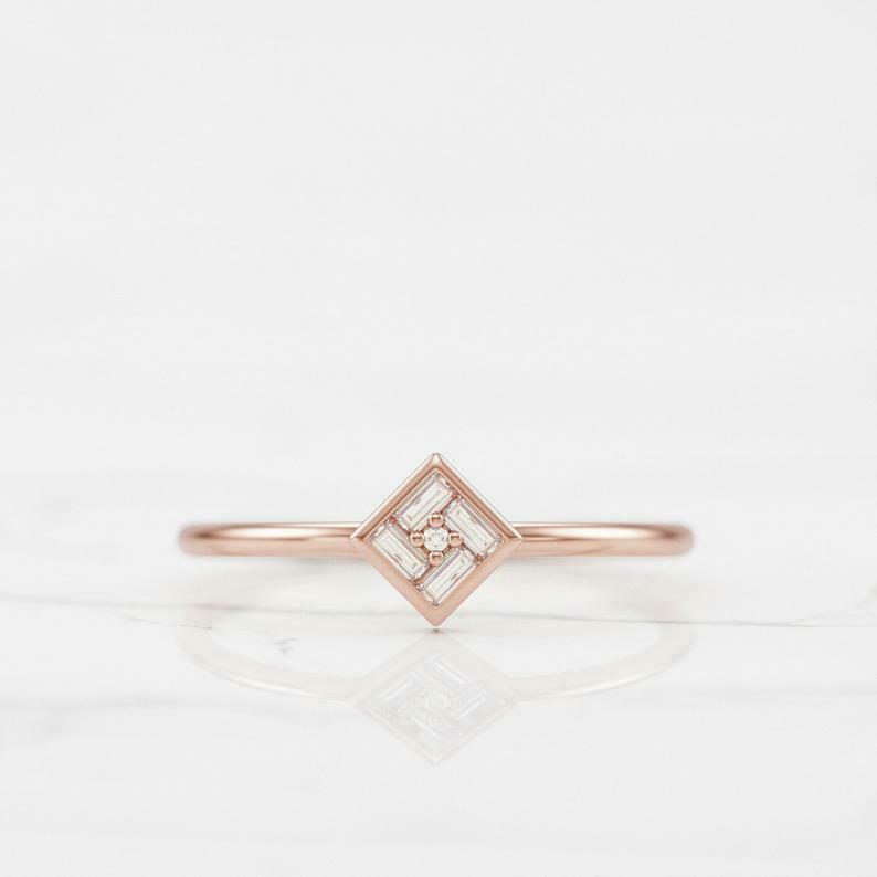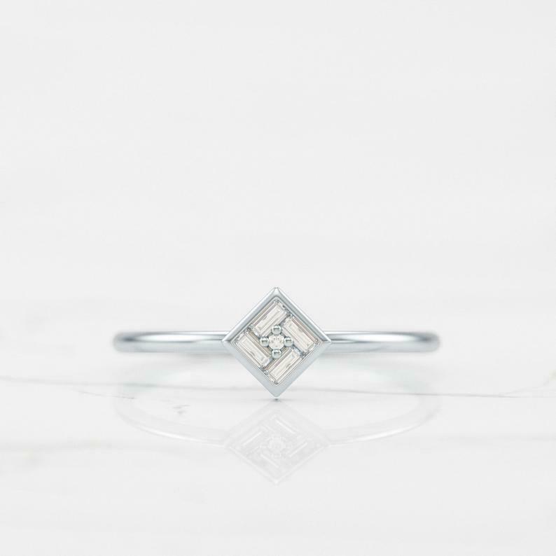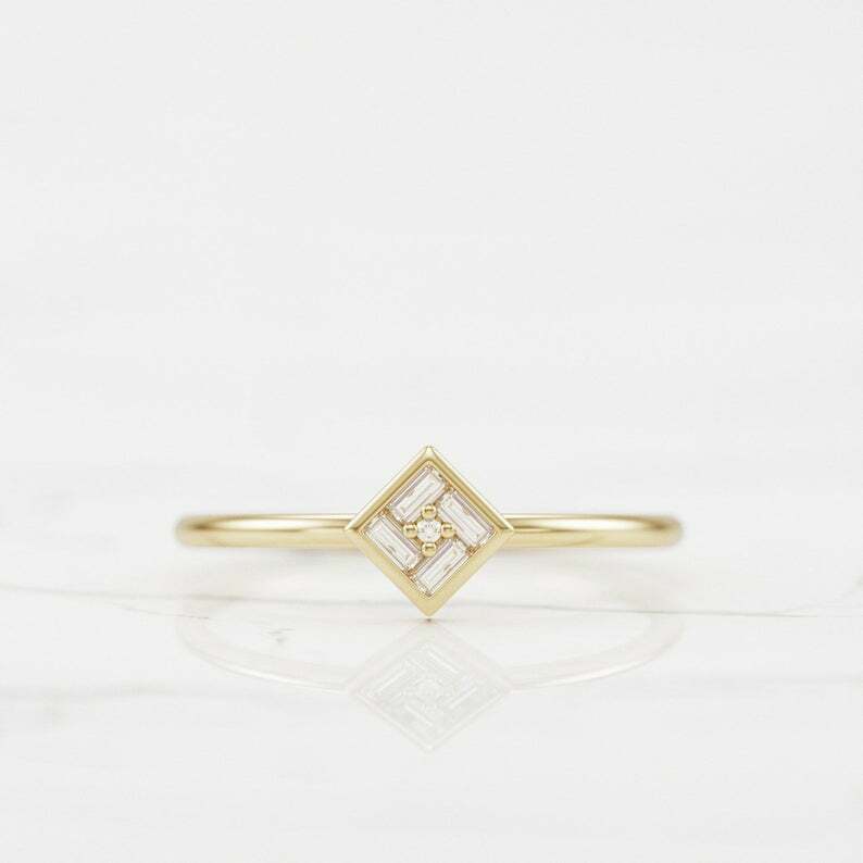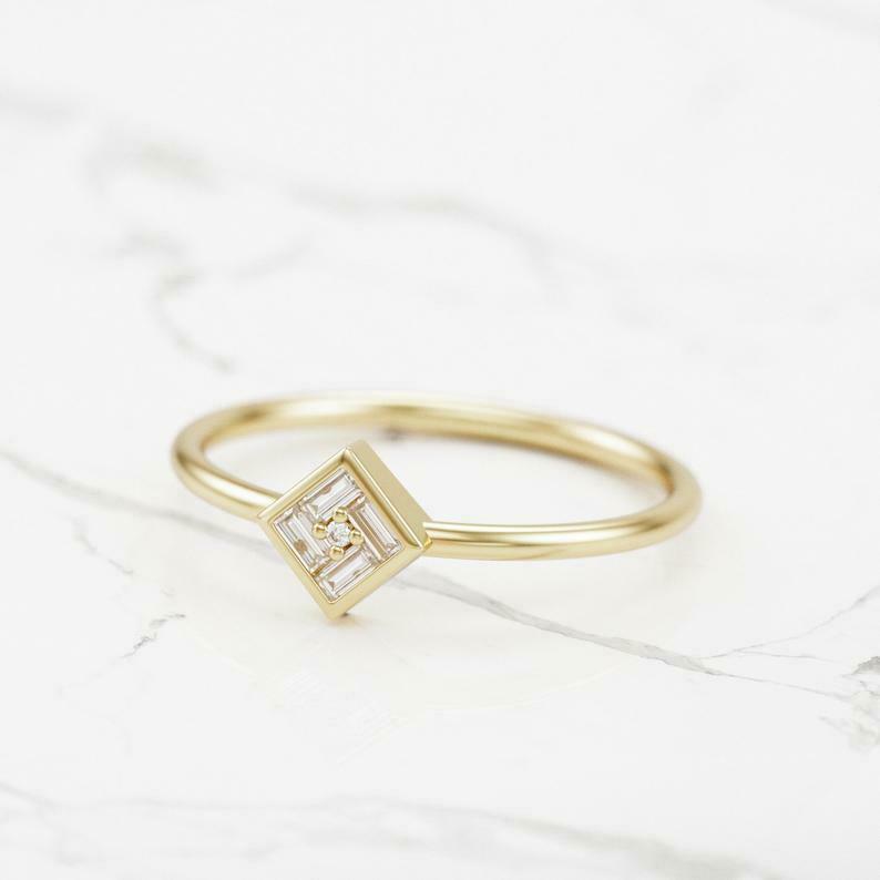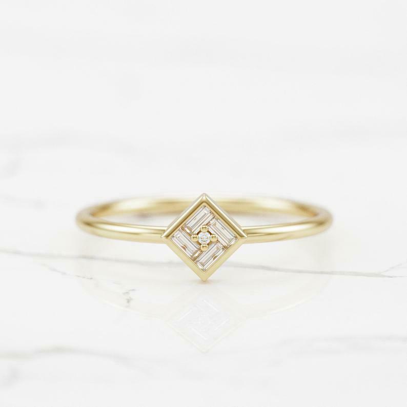 Dainty Minimalist Engagement Ring 0.3ct Baguette Cut Diamond 14k Yellow Gold Over