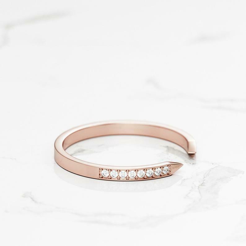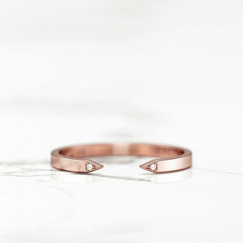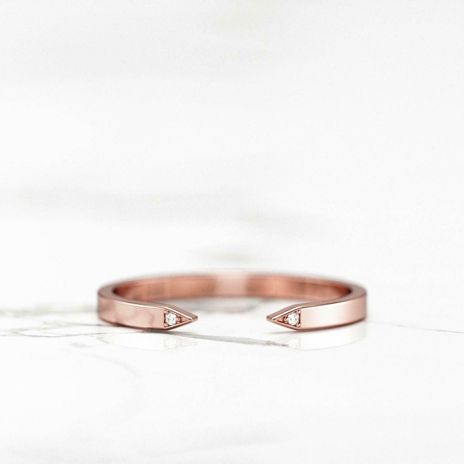 Dainty Open Stackable Wedding Band 0.12ct Round Cut Diamond 14k Rose Gold Finish