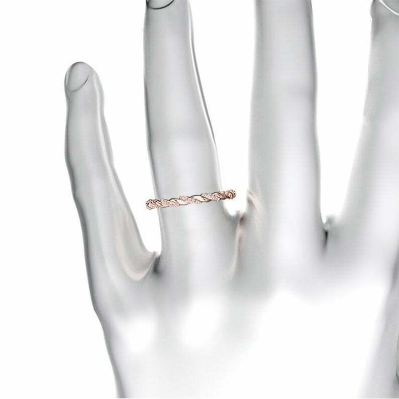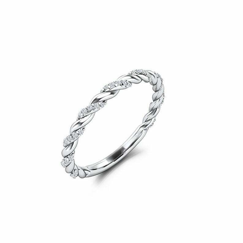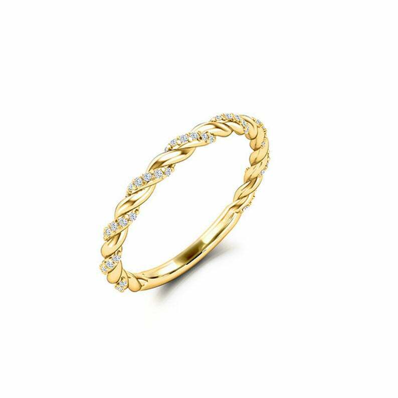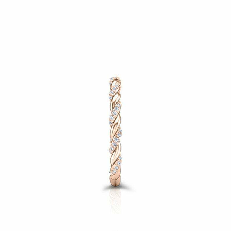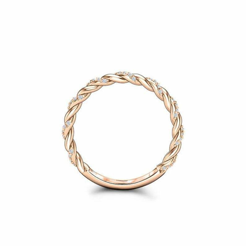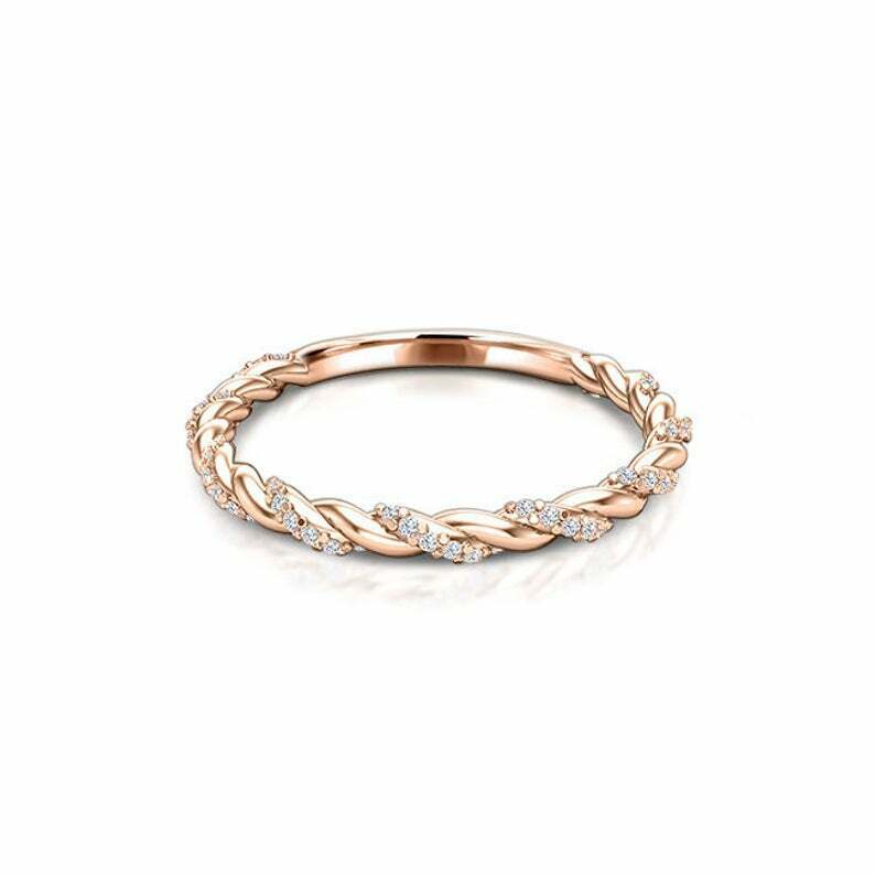 Dainty Twisted Rope Wedding Band 0.15ct Round Cut Diamond 14k Rose Gold Finish