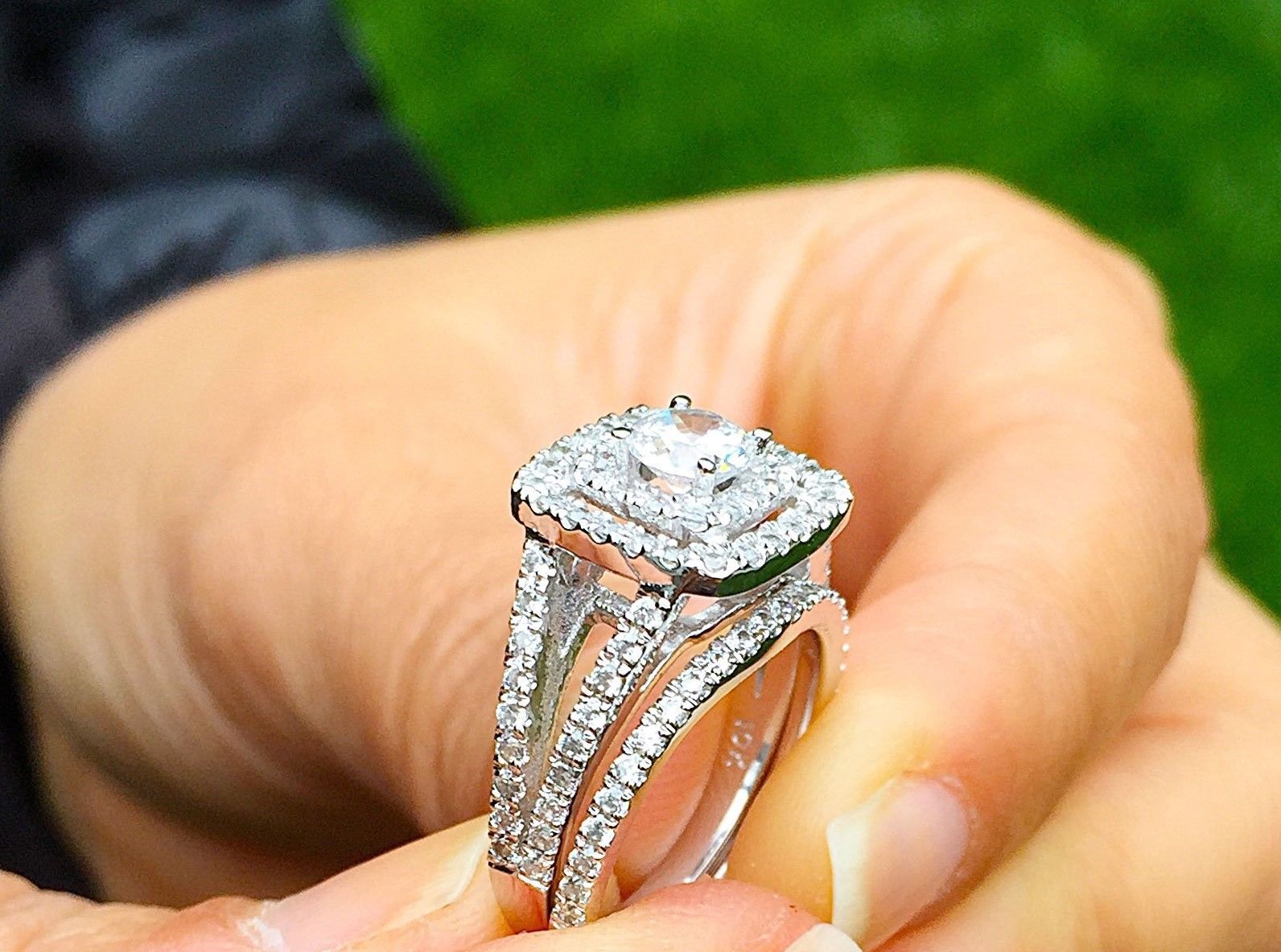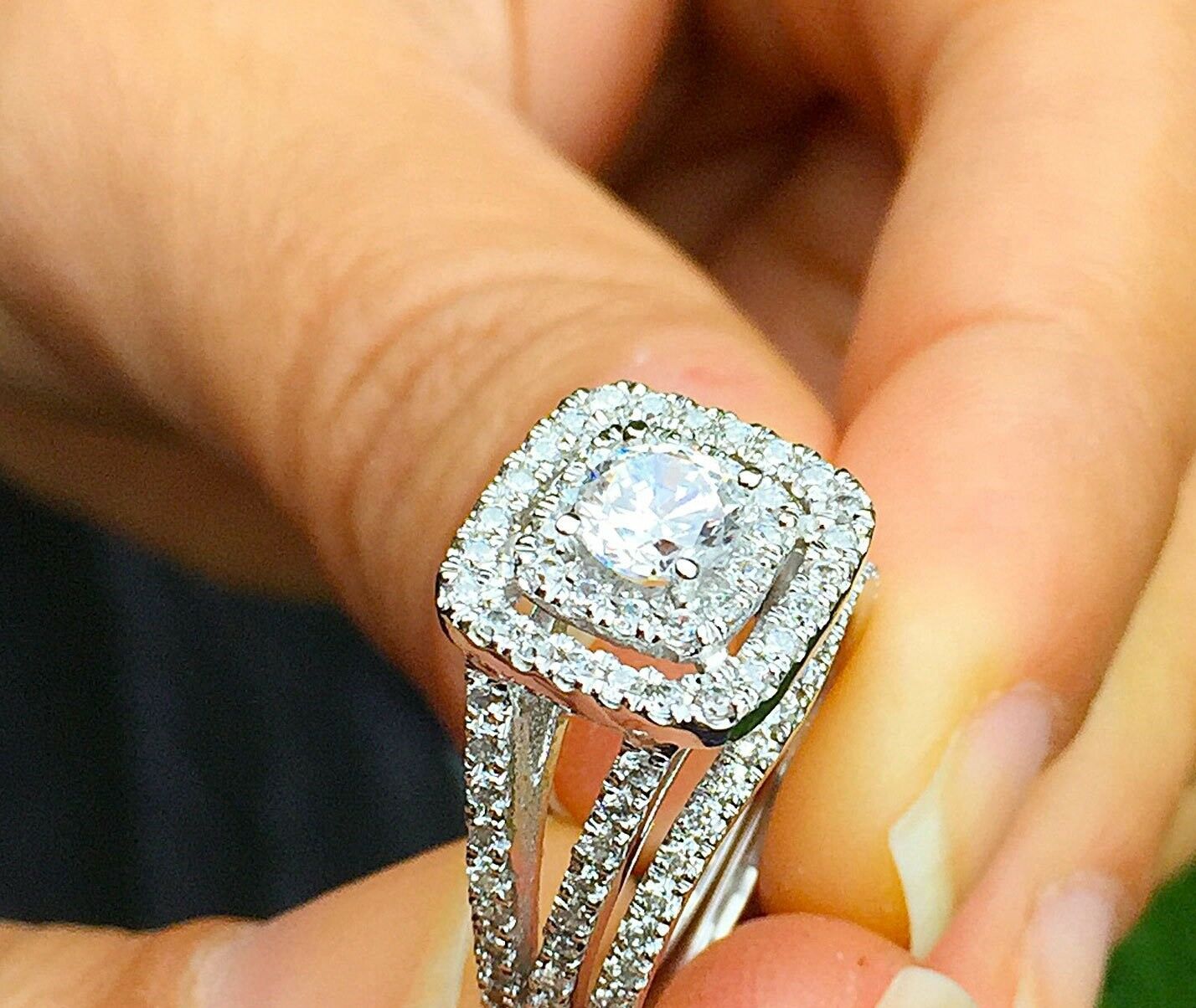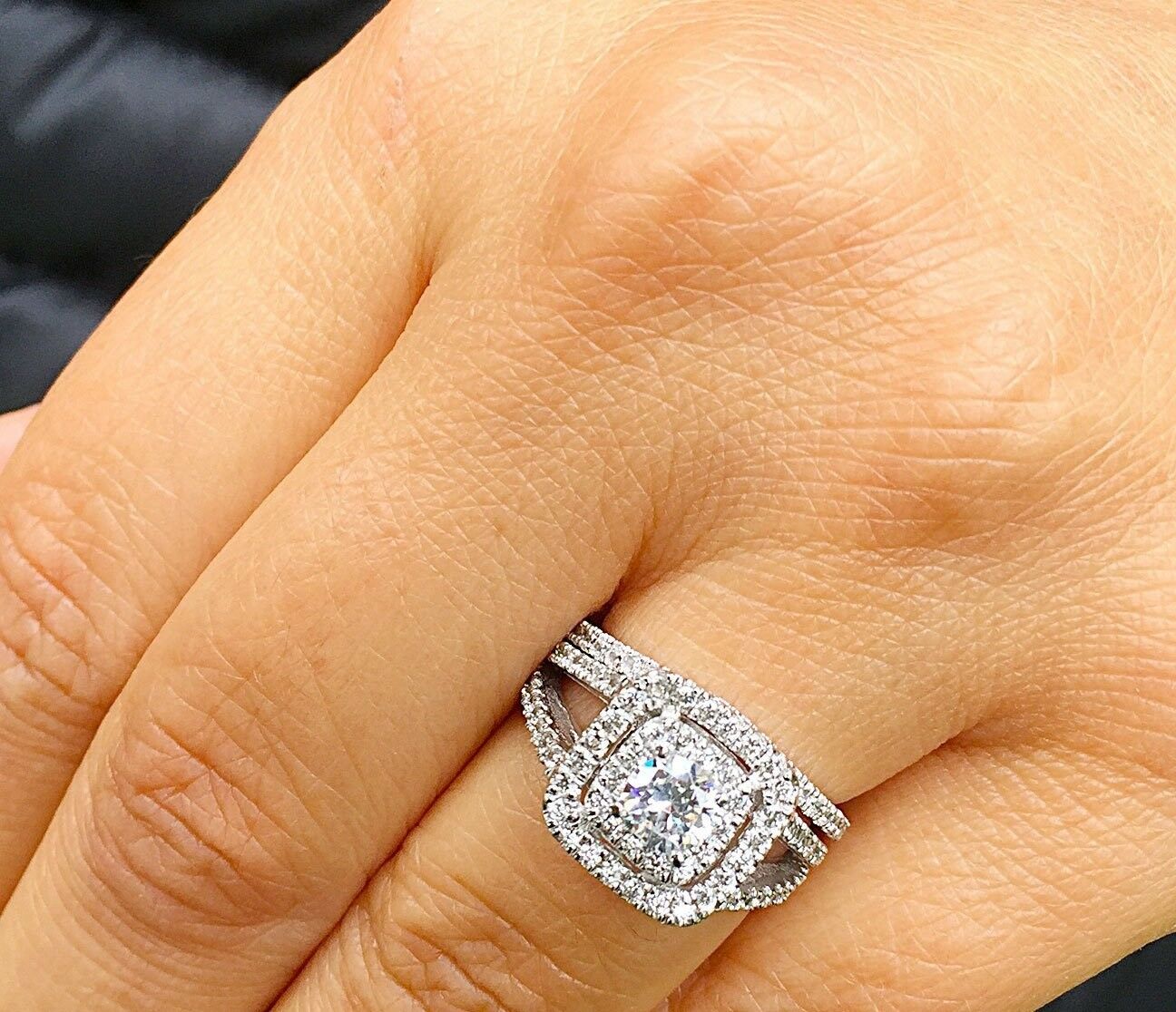 Double Halo Bridal Set Engagement Ring 2.3ct Round Diamond 14k White Gold Finish