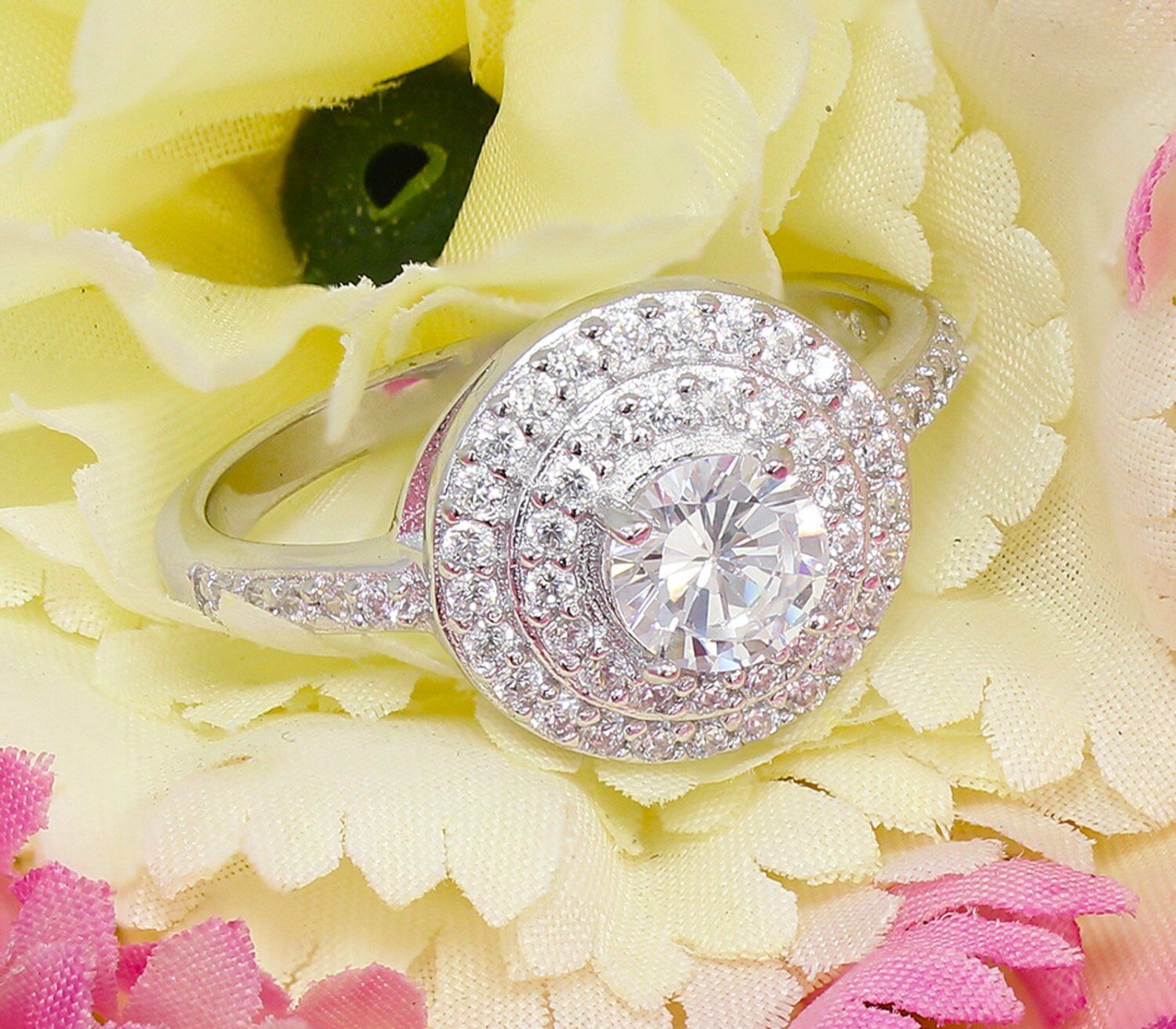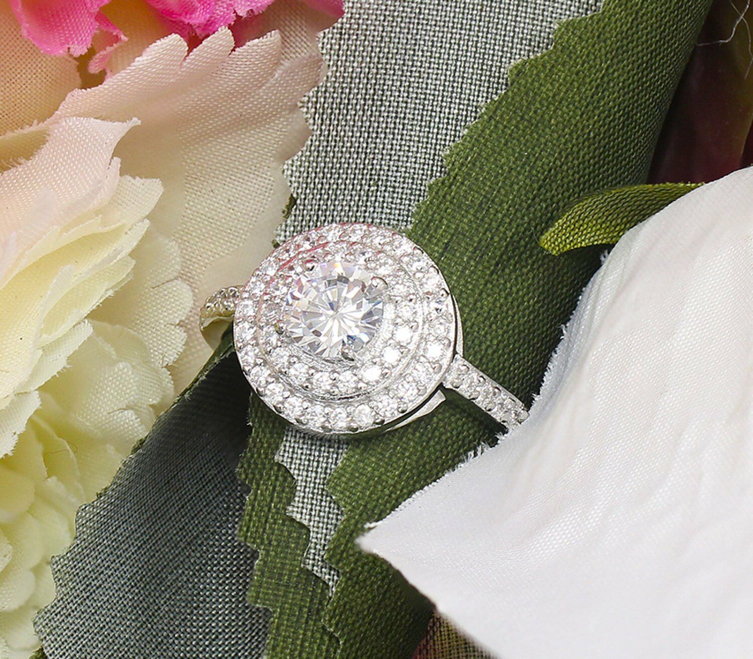 Double Halo Solitaire Engagement Ring 2ct Round Cut Diamond 14k WhiteGold Finish
