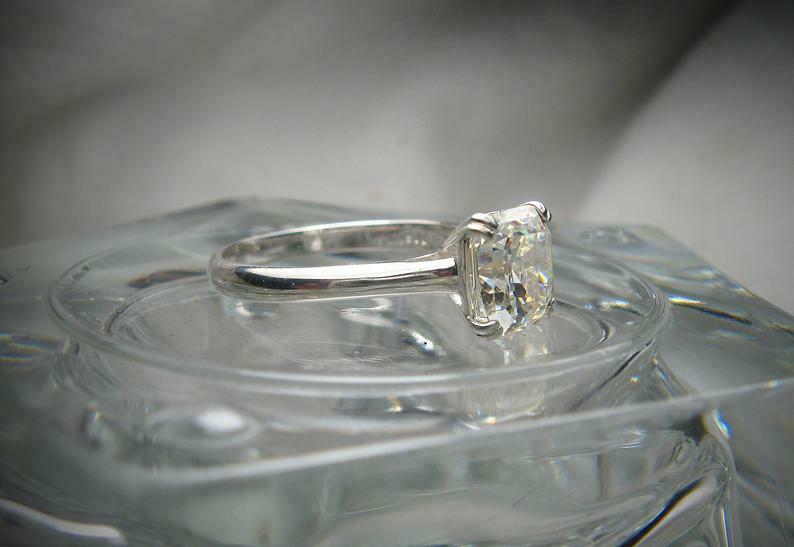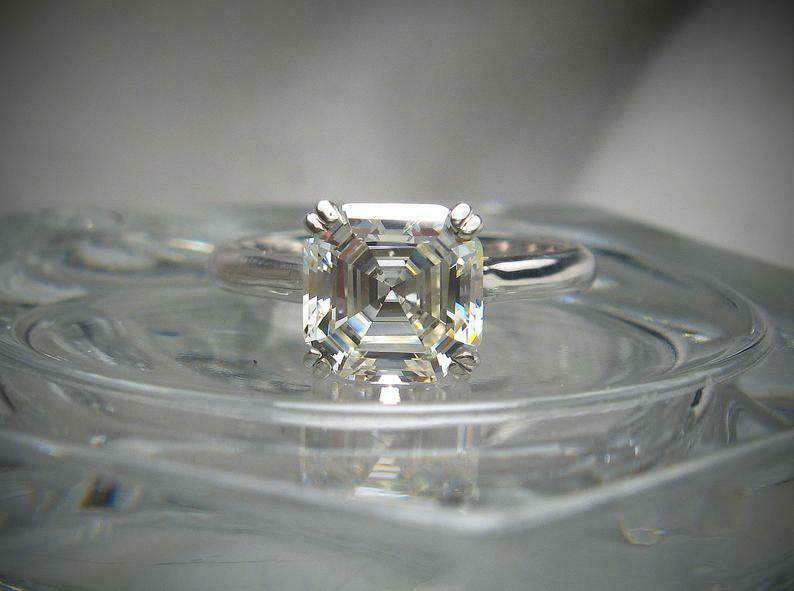 Double Prong Solitaire Engagement Ring 2.5ct Asscher Cut Diamond 14k White Gold Over