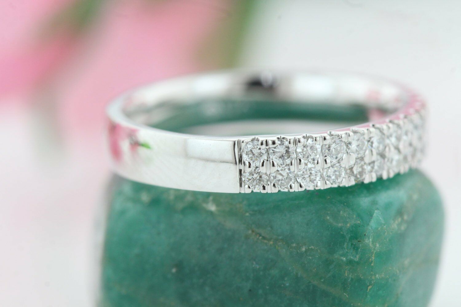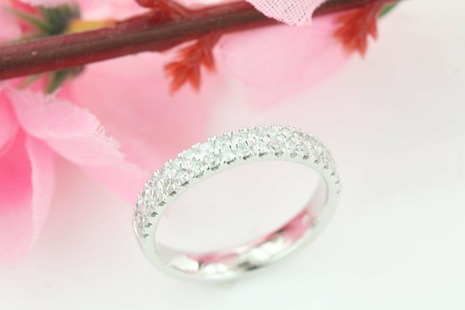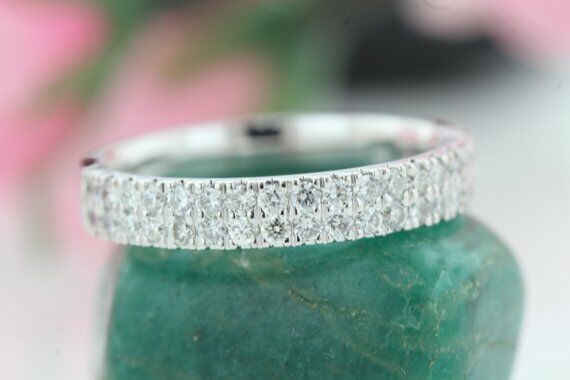 Double Row Eternity Wedding Ring Band 1ct Round Cut Diamond 14k WhiteGold Finish