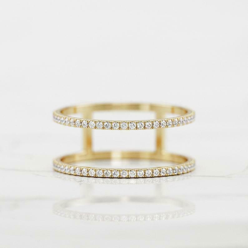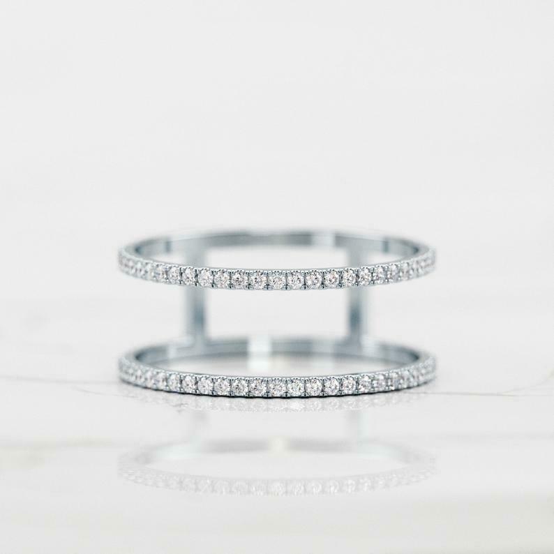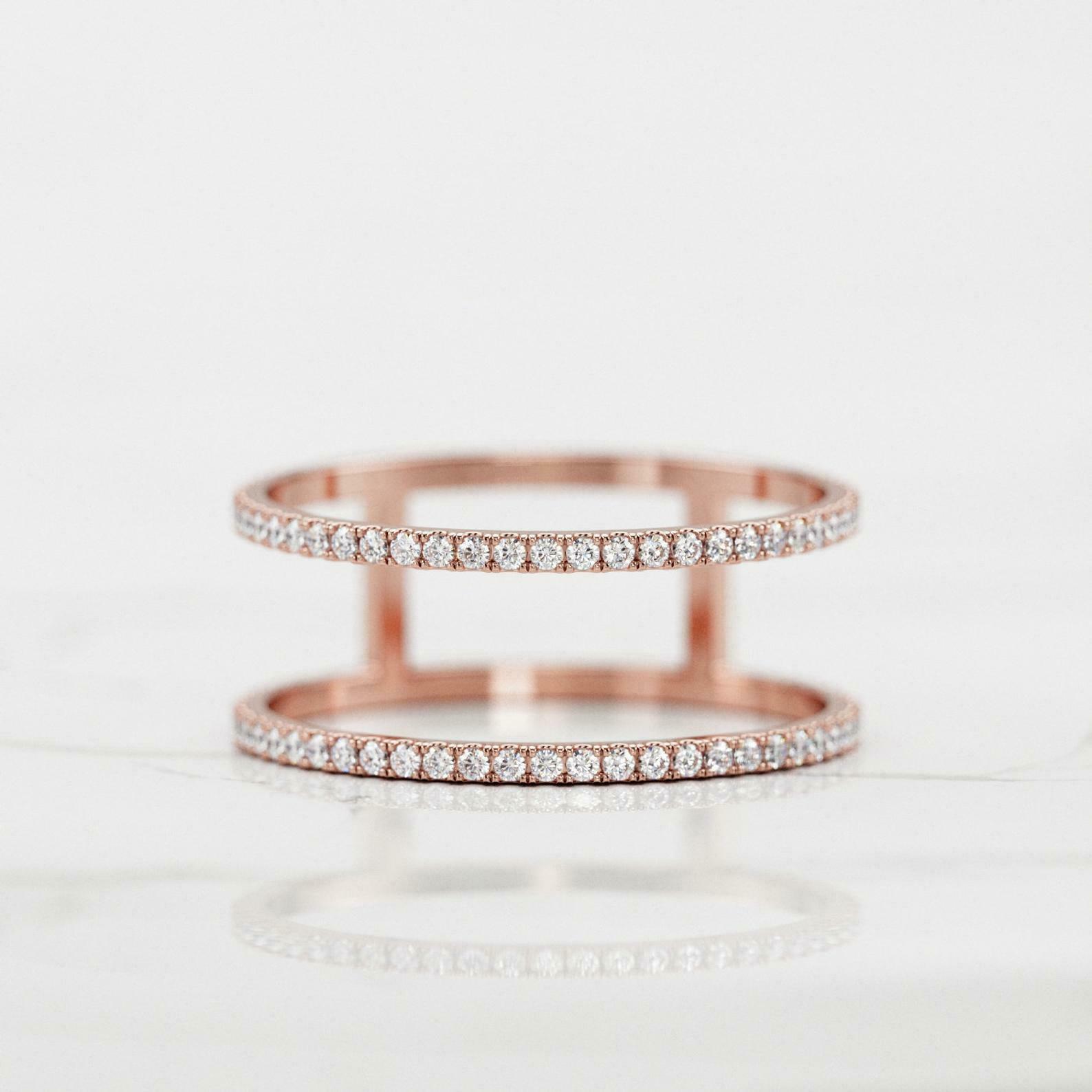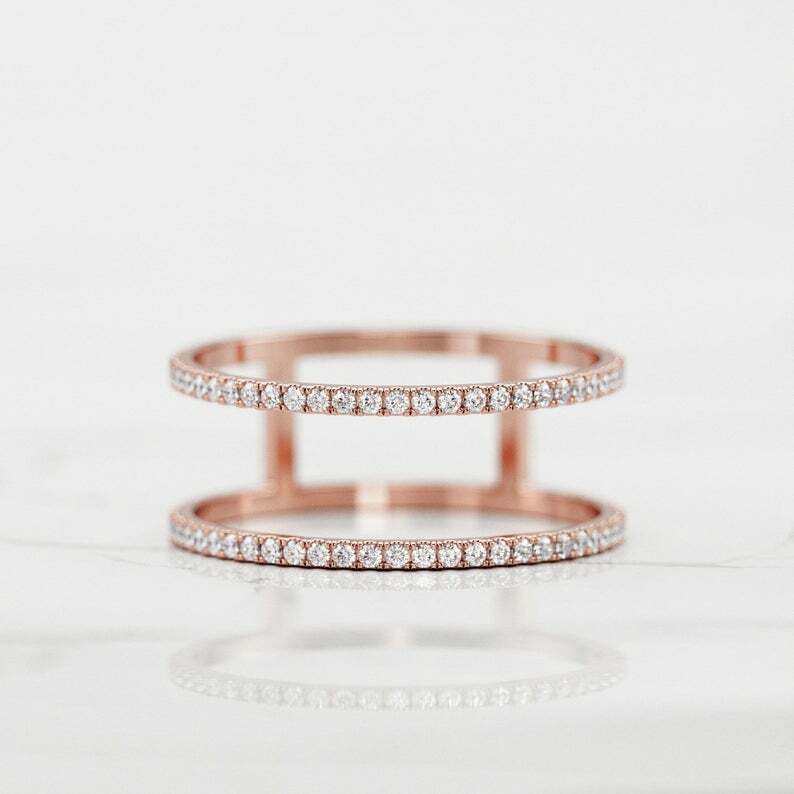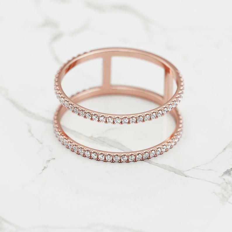 Double Row Open Wedding Band 1.2ct Round Cut VVS1D Diamond 14k Rose Gold Finish