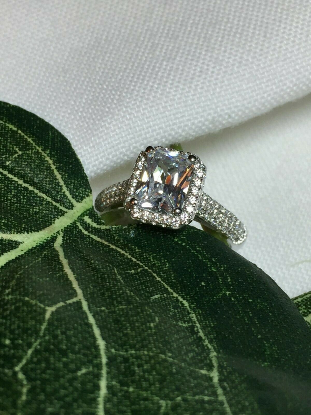 Dual Three Accent Women Engagement Ring 2.2ct Radiant Diamond 14k WhiteGold Over