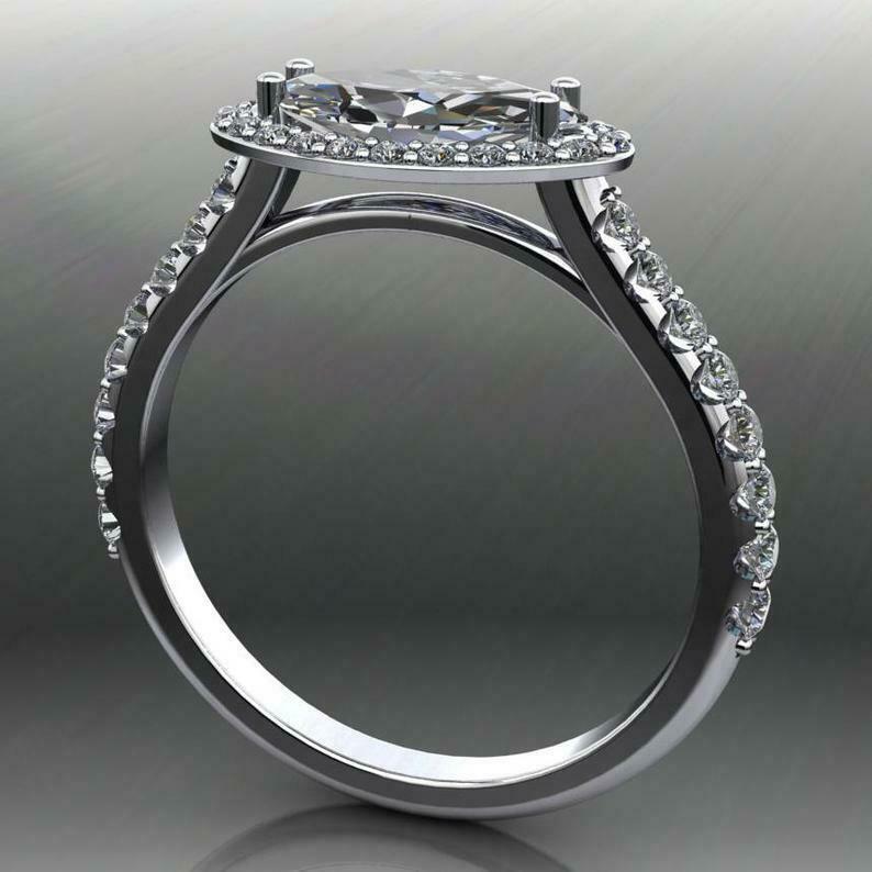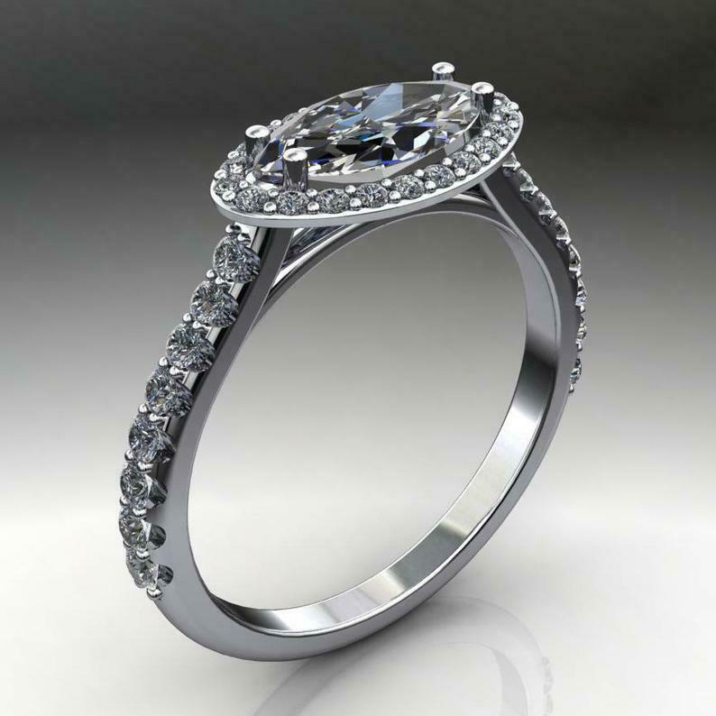 East West Halo Engagement Ring 1.3ct Marquise Cut Diamond 14k White Gold Finish