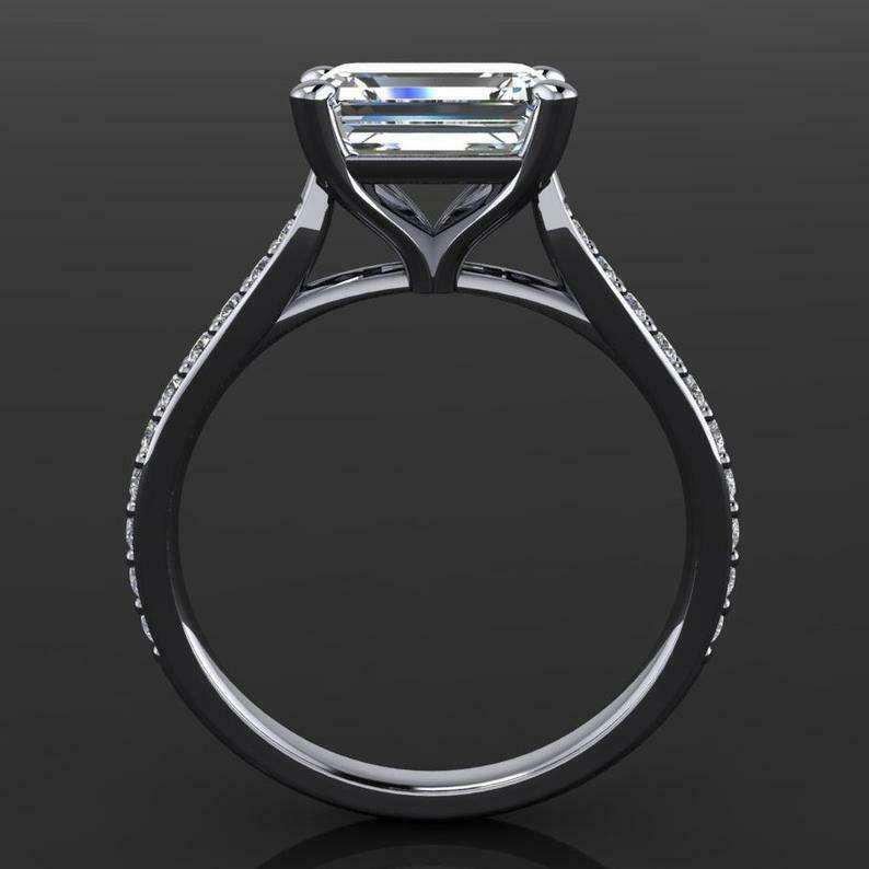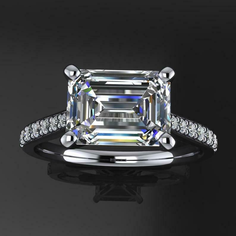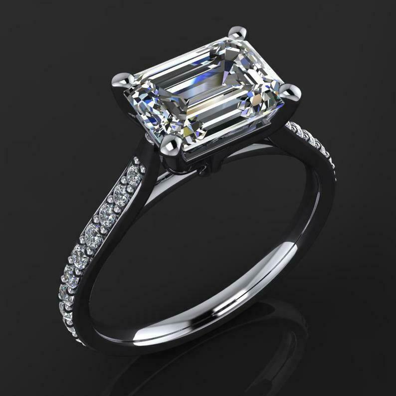 East West Solitaire Engagement Ring 1.75ct Emerald Diamond 14k White Gold Finish