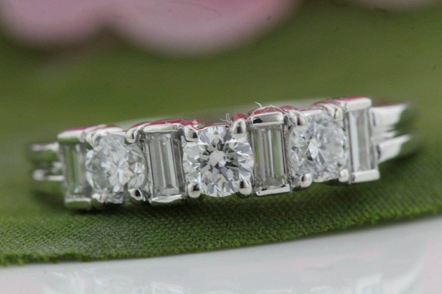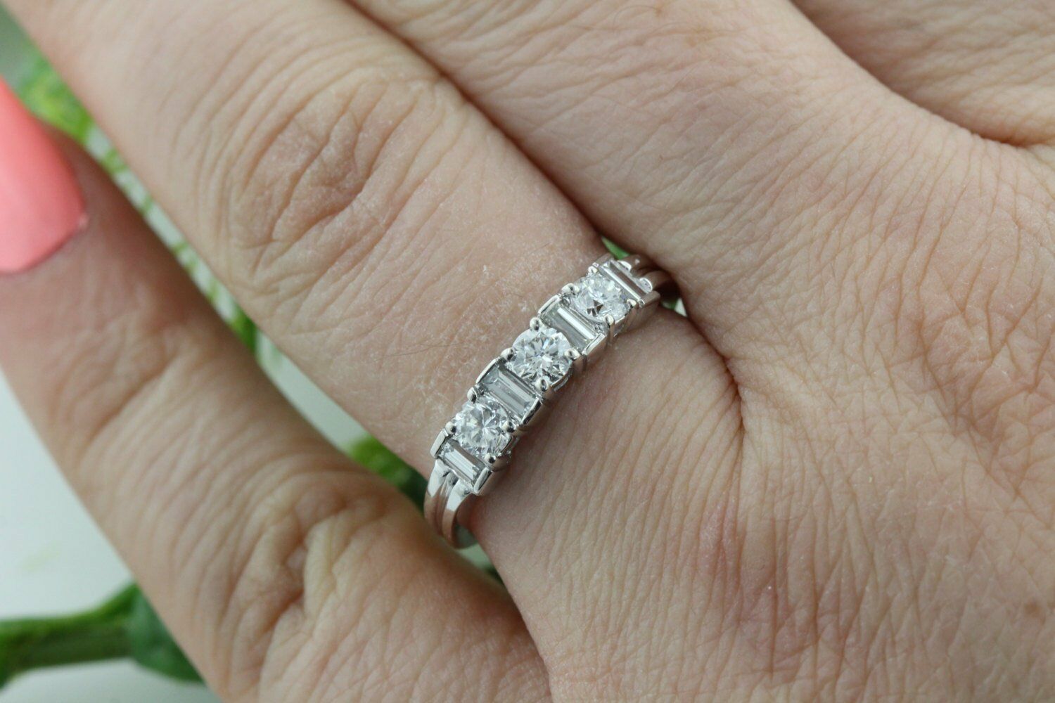 Eternity Wedding Band 0.87ct Round & Baguette Cut Diamond 14k White Gold Finish