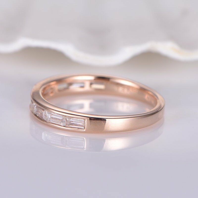 Eternity Wedding Ring Band 1ct Baguette Cut VVS1D Diamond 14k Rose Gold Finish