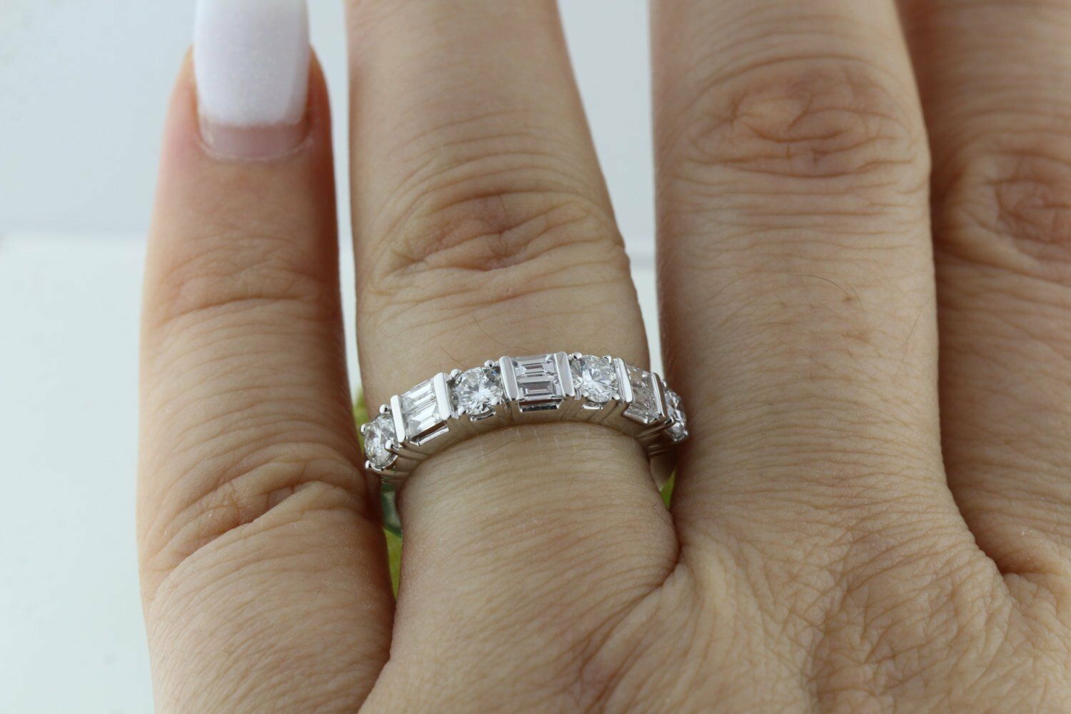 Eternity Wedding Ring Band 2ct Round & Baguette Cut Diamond 14k WhiteGold Finish