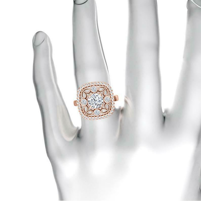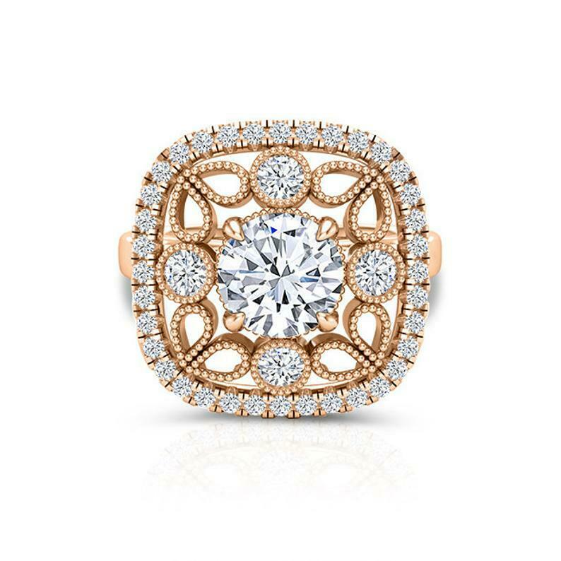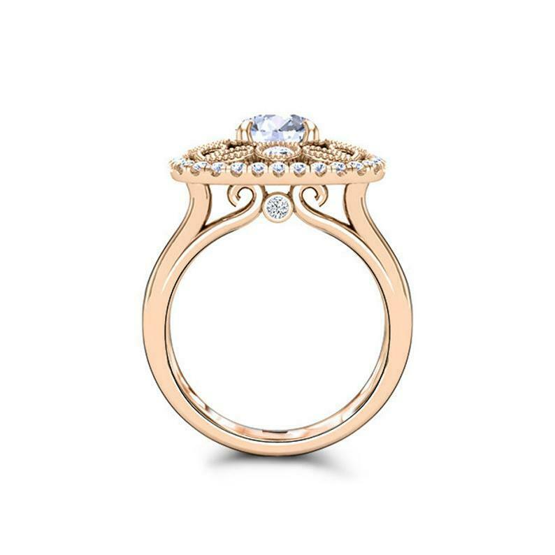 Filigree Milgrain Halo Engagement Ring 2ct Round Cut Diamond 14k Rose Gold Finish