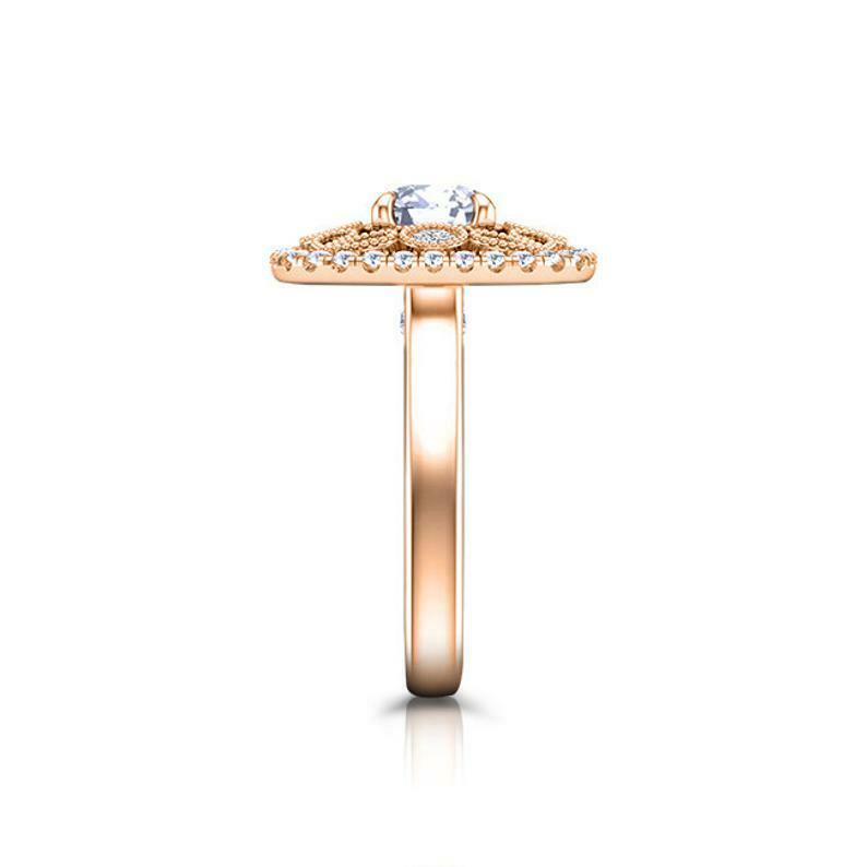Filigree Milgrain Halo Engagement Ring 2ct Round Cut Diamond 14k RoseGold Finish