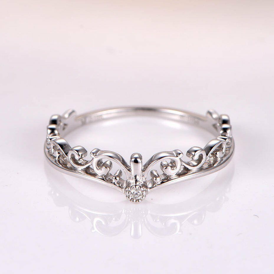 Filigree Women Engagement Ring 0.2ct Round Cut Diamond 14k White Gold Finish