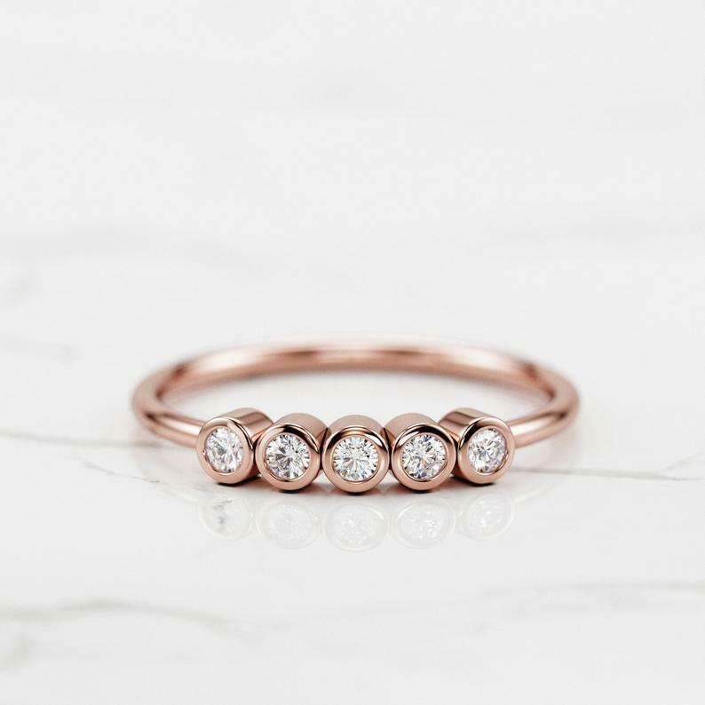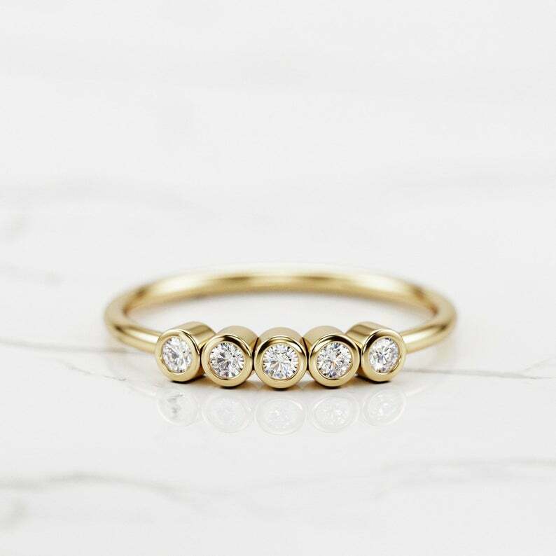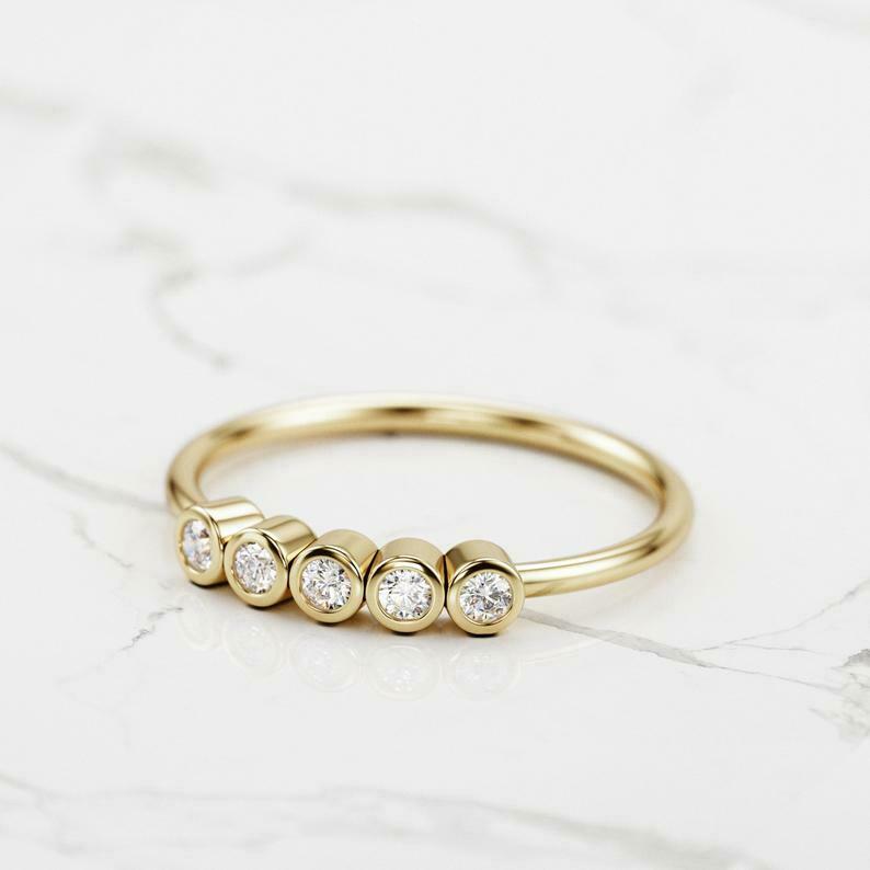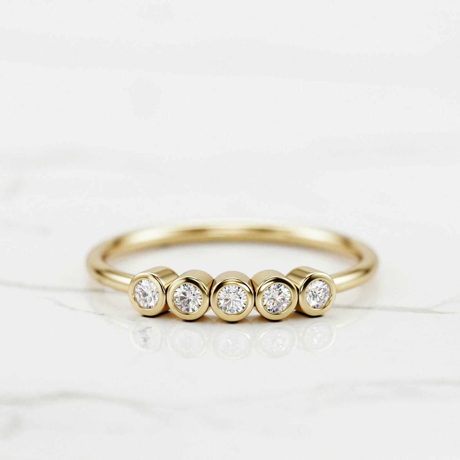 Five Stone Bezel Set Engagement Ring 1ct Round Cut Diamond 14k Yellow Gold Finish