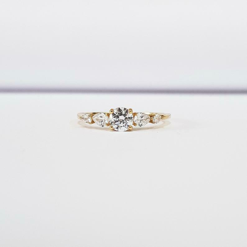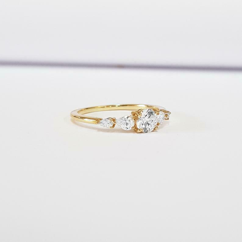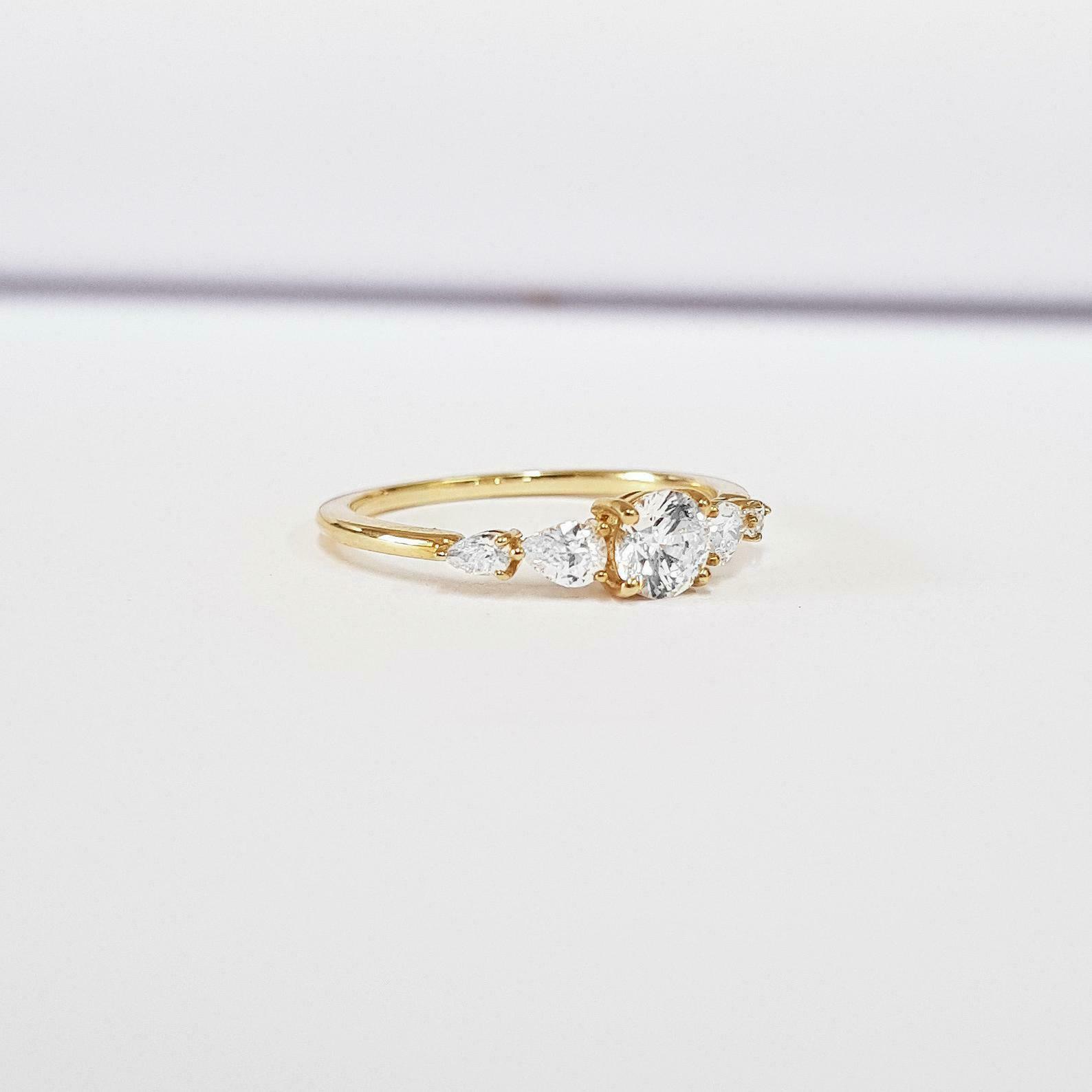 Five Stone Engagement Ring 0.6ct Round Cut VVS1D Diamond 14k Yellow Gold Finish