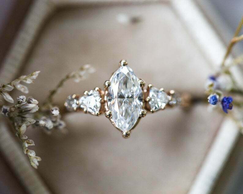 Five Stone Engagement Ring 1.7ct Marquise Cut VVS1D Diamond 14k Rose Gold Finish